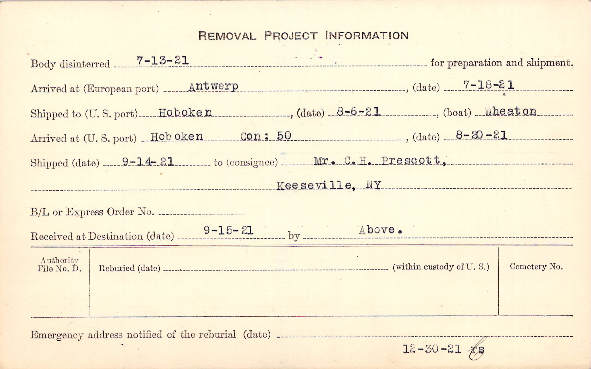 to Mr. C. H. Prescott, Keeseville, N.Y.