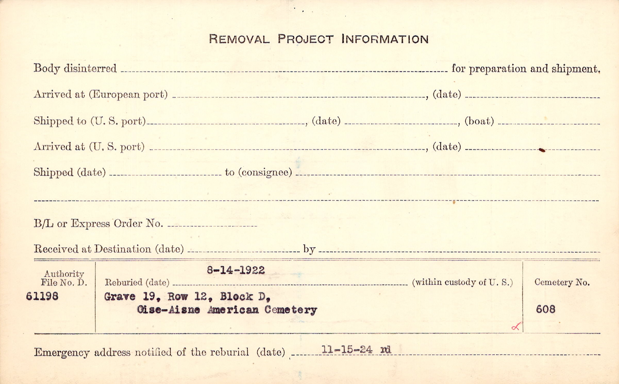 Grave #83, Amer. Plot, Row D, Amer. Cty., Bazoches, Aisne