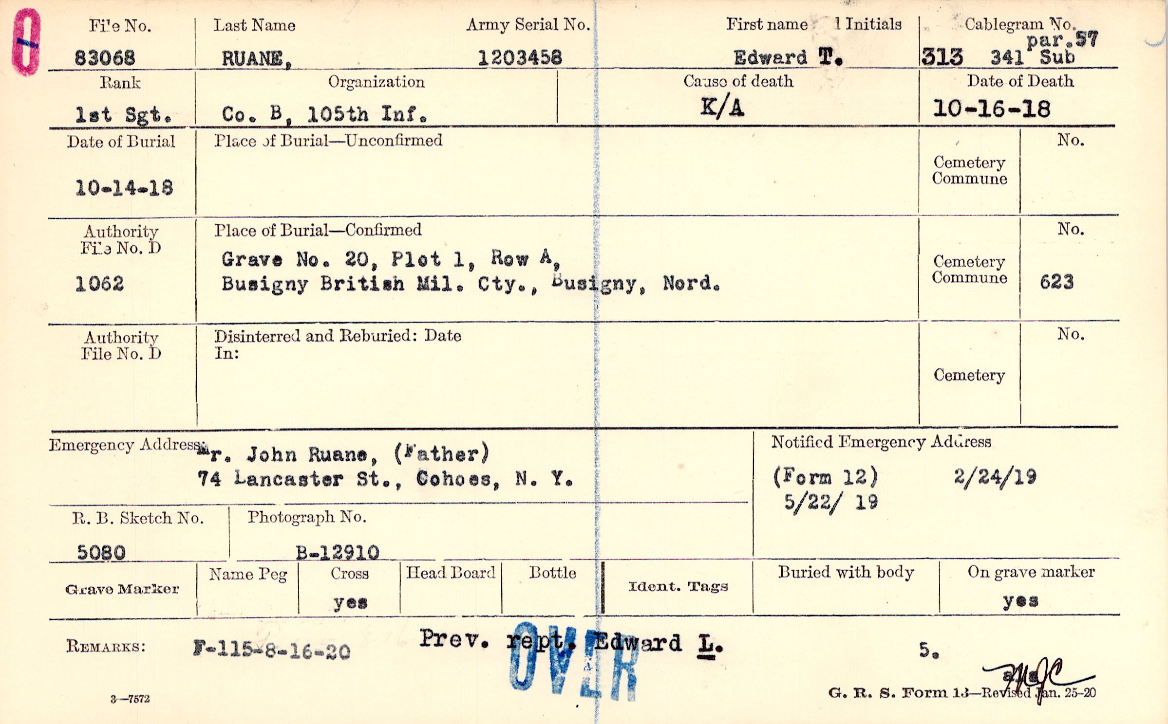Mr. John Ruane, (Father), 74 Lancaster St., Cohoes, N. Y.
