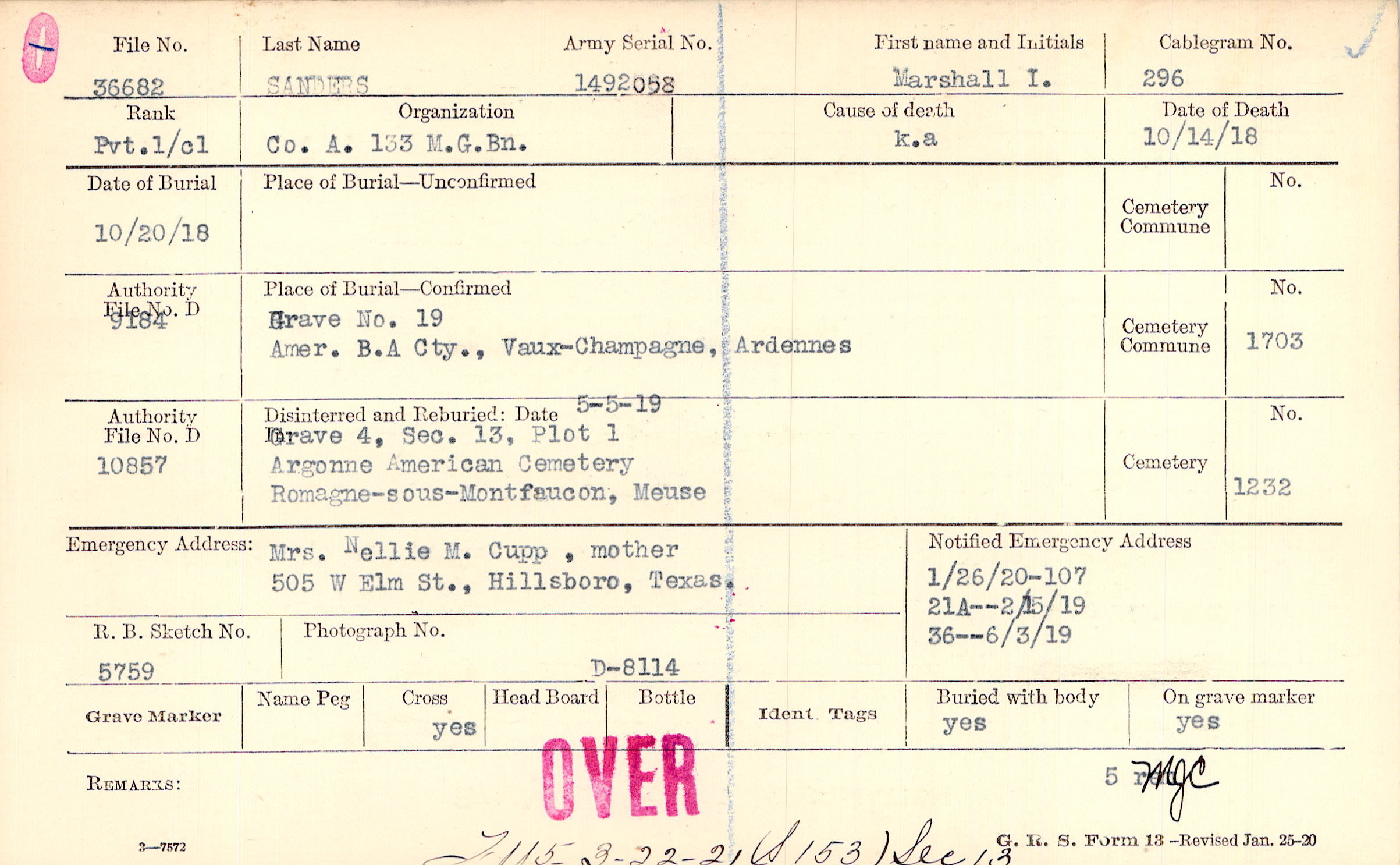 Grave. 19, Amer. B/A Cty., Vaux-Champagne, Ardennes