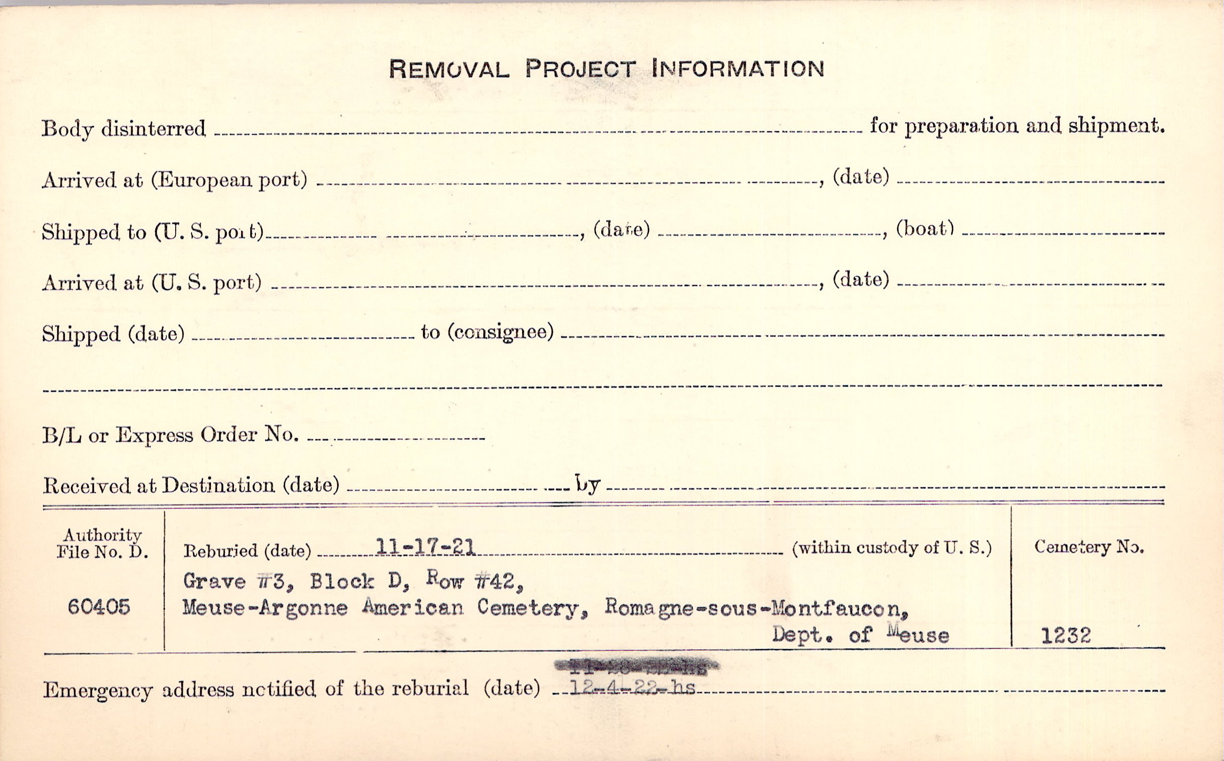 | Permanent Burial in Foreign Cemetery |