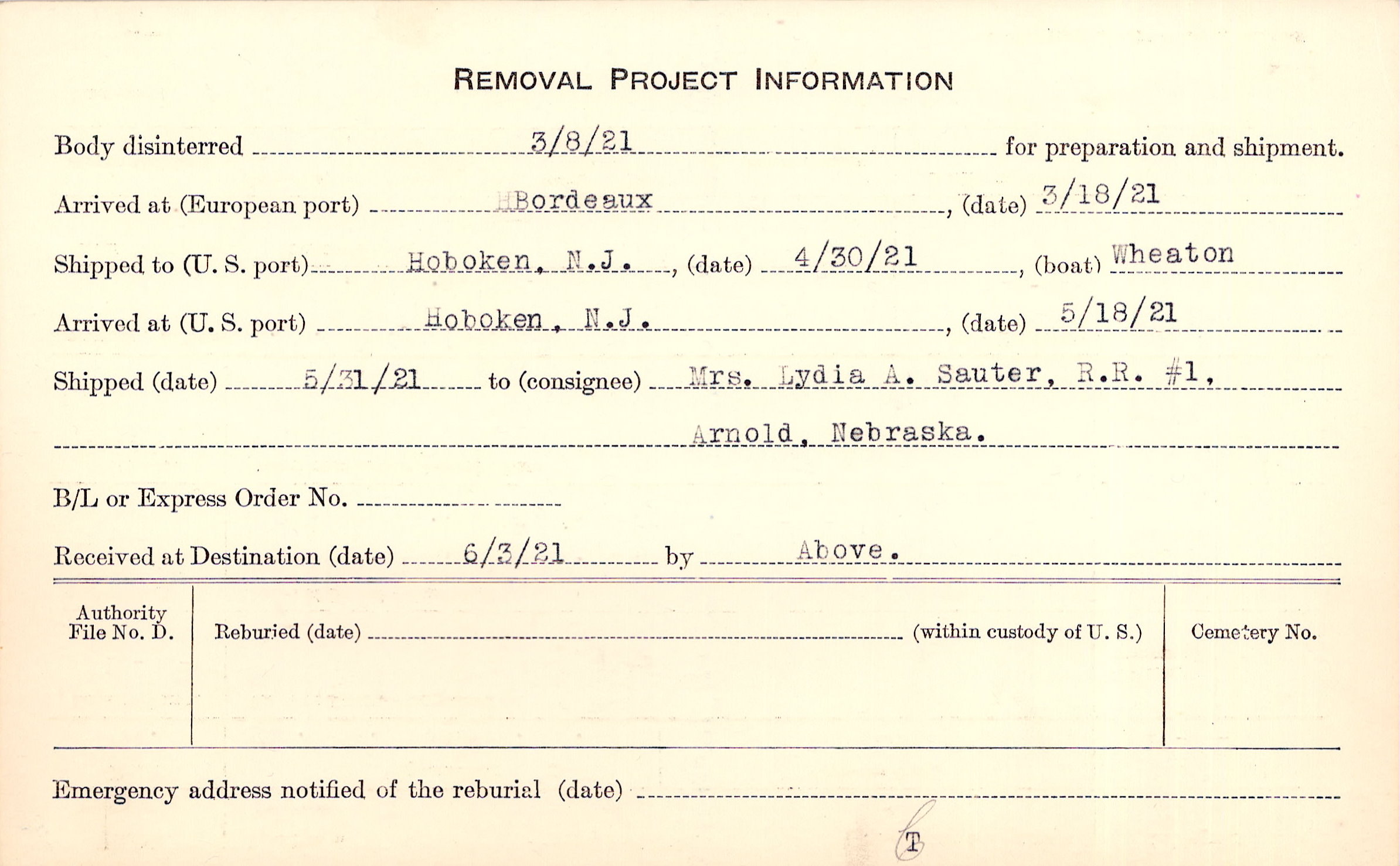 L. A. Sauter (Mother), Arnold, Nebr., Over