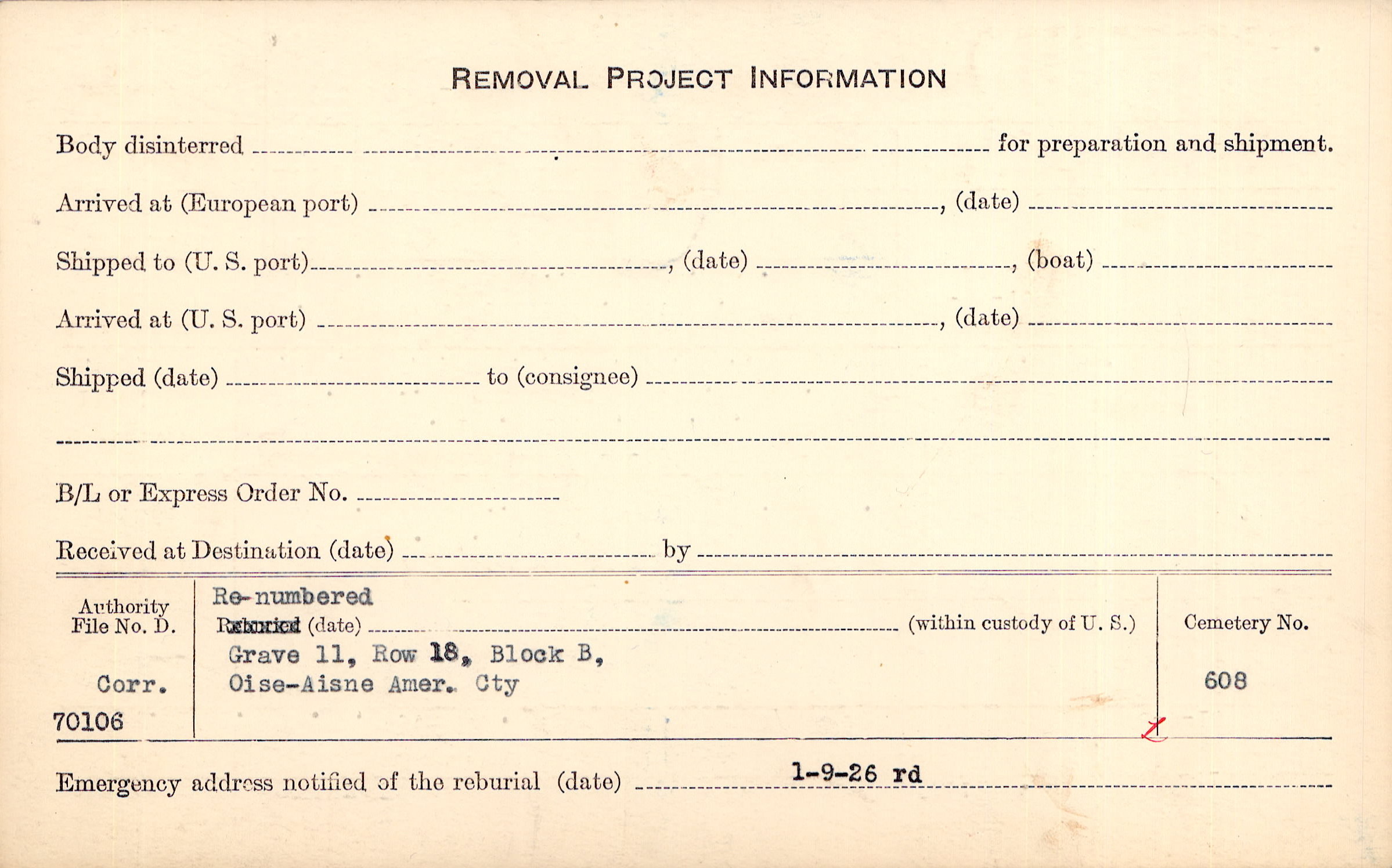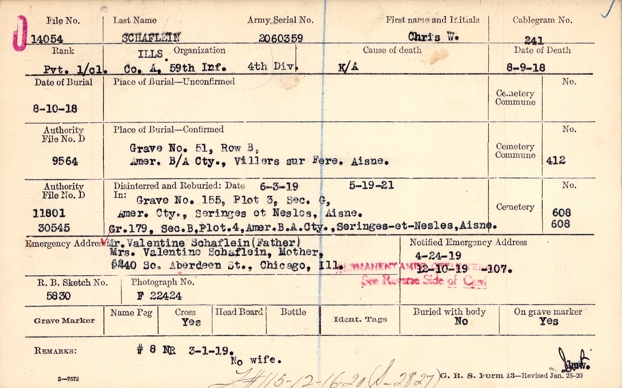 Grave 51, Row B, Amer. B/A Cty., Villers sur Fere, Aisne.