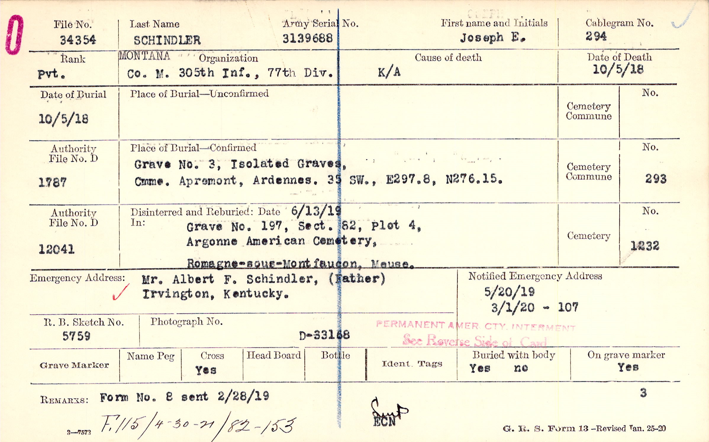 Grave 3, Isolated Graves, Cmme. Apremont, Ardennes, 35 SW