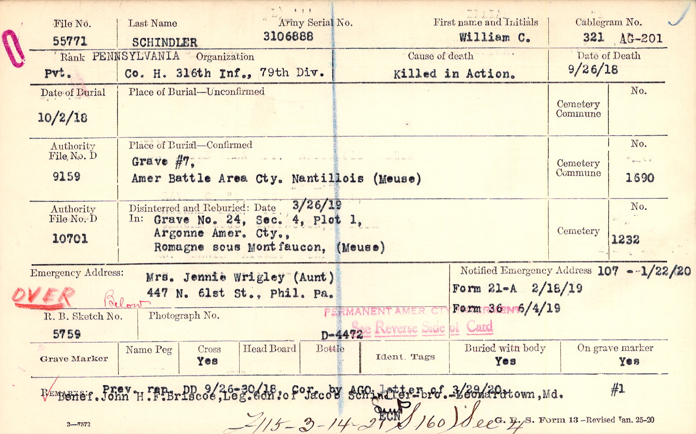 Grave #7, Amer Battle Area Cty., Nantillois, Meuse