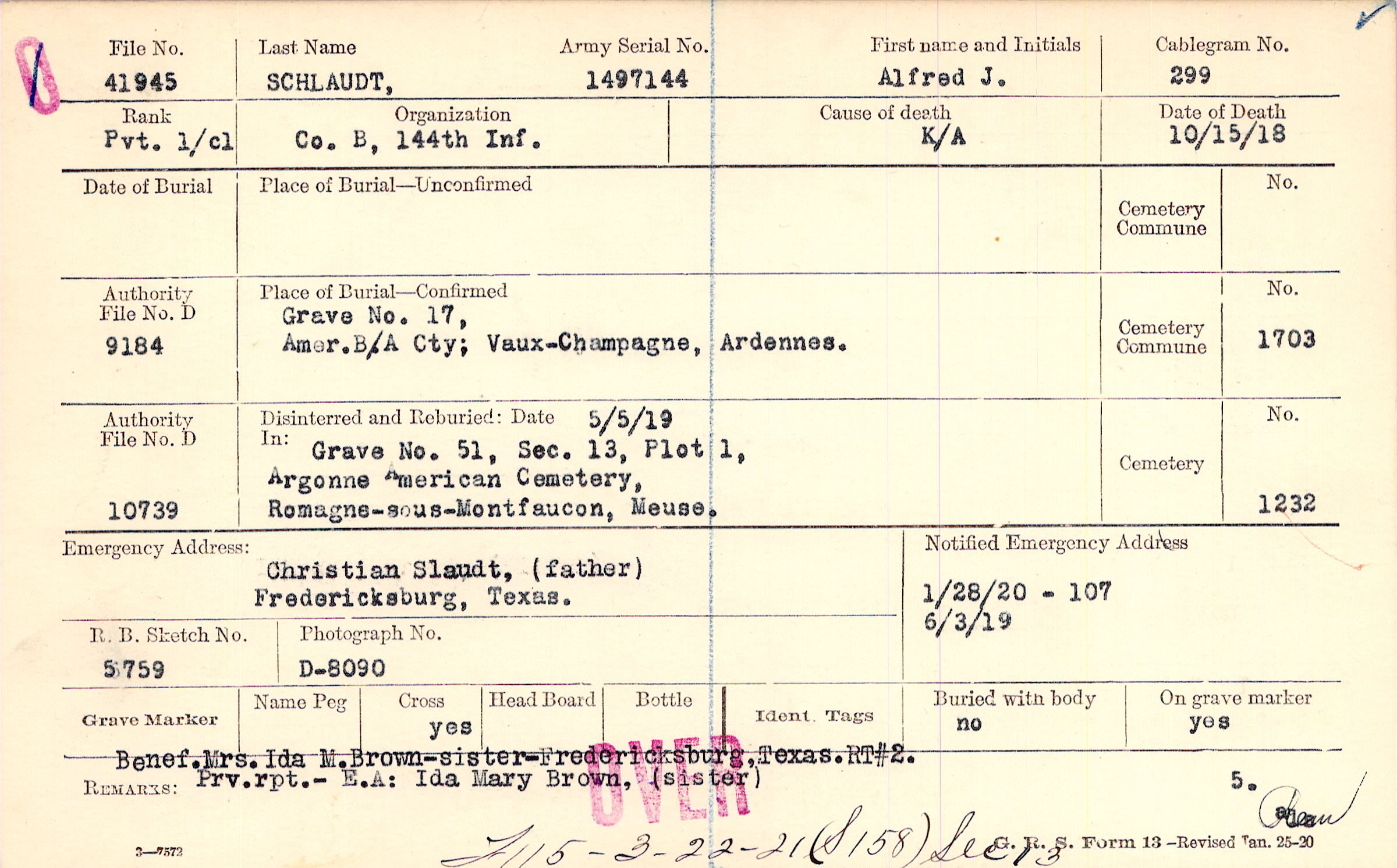 to Mrs. Lisette Schlaudt, Fredericksburg, Texas R.F.D. #3