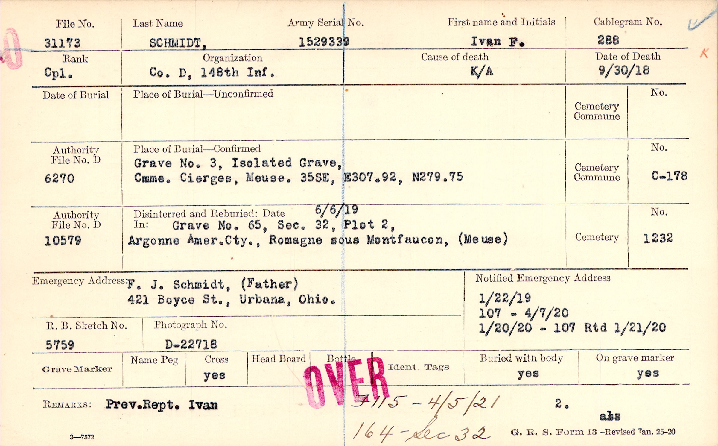 F. J. Schmidt, (Father), 421 Boyce St., Urbana, Ohio.