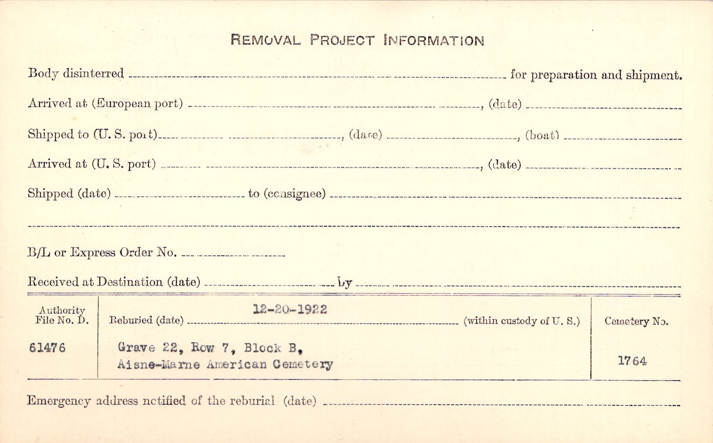Grave #3, Plot #1, Enlisted Men's Section, American Cty., of Clermont-Ferrand, Puy de Dome