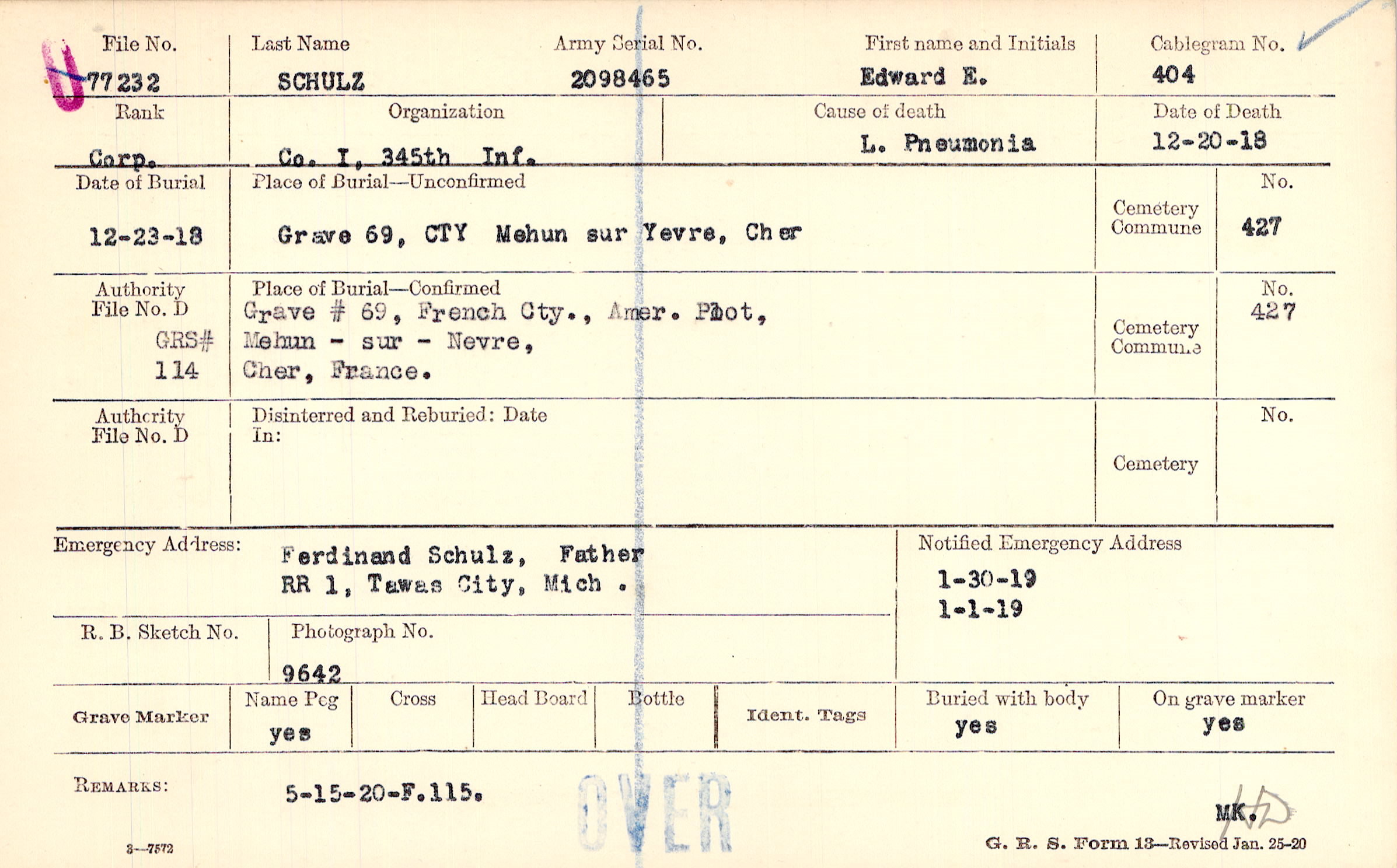 Ferdinand Schulz, Father, RR 1, Tawas City, Mich., 1-30-19 1-1-19