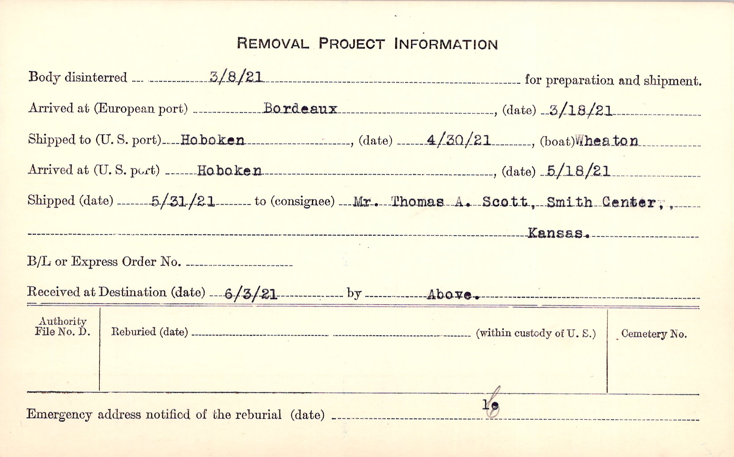 Thomas A. Scott (Father), RFD #2, Bellaire, Kansas.