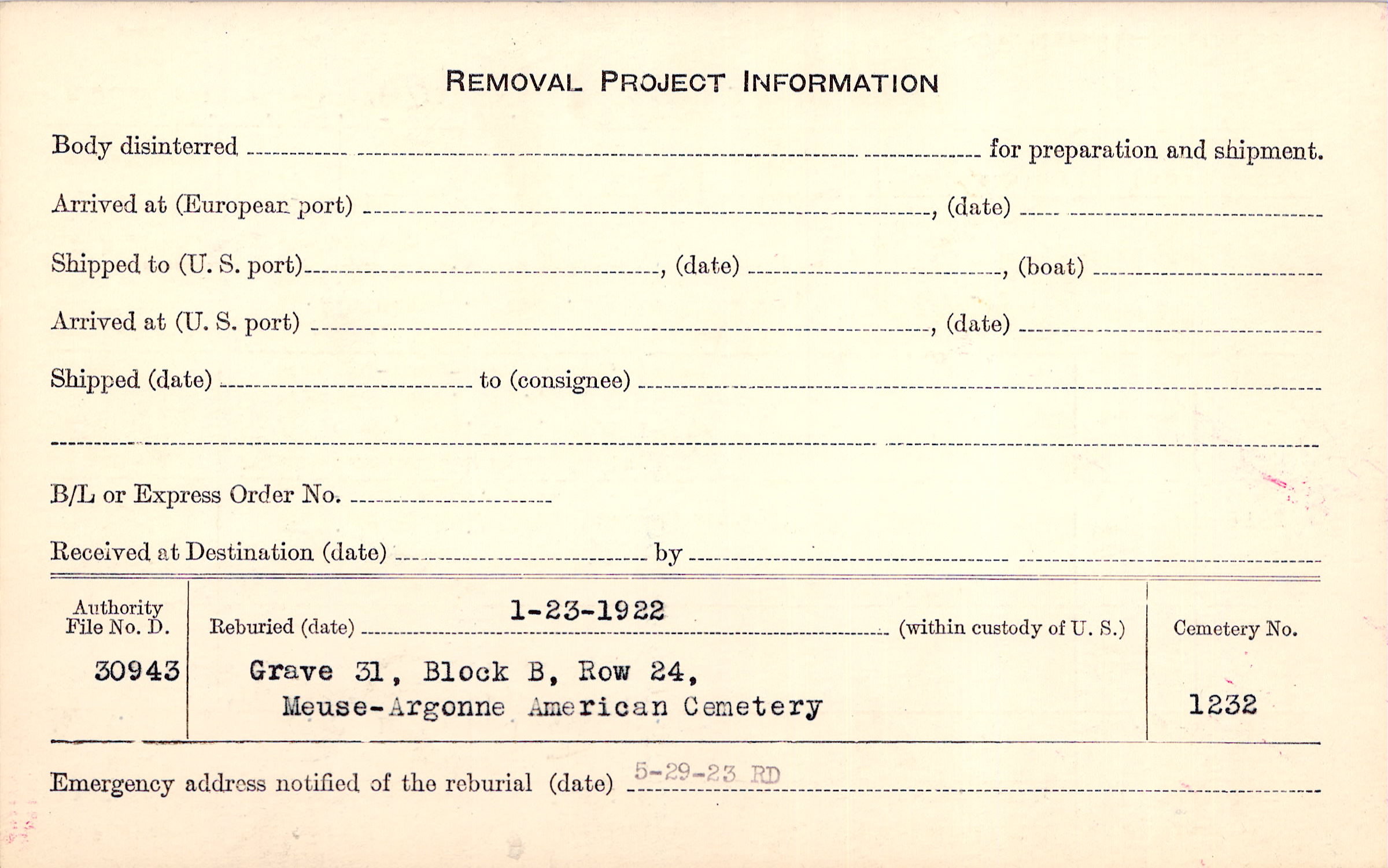 Grave 43, Section 13, Plot 1, Argonne American Cemetery, Romagne-sous-Montfaucon, Meuse