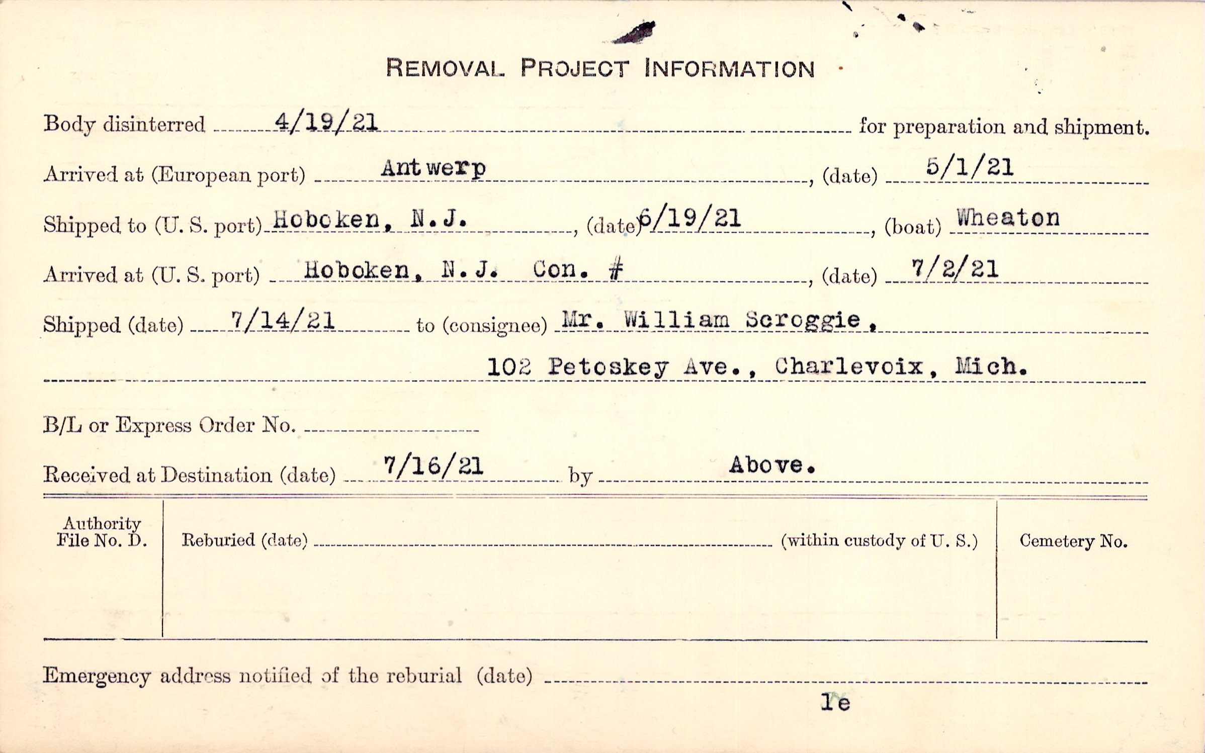 to Mr. William Scroggie, 102 Petoskey Ave., Charlevoix, Mich.