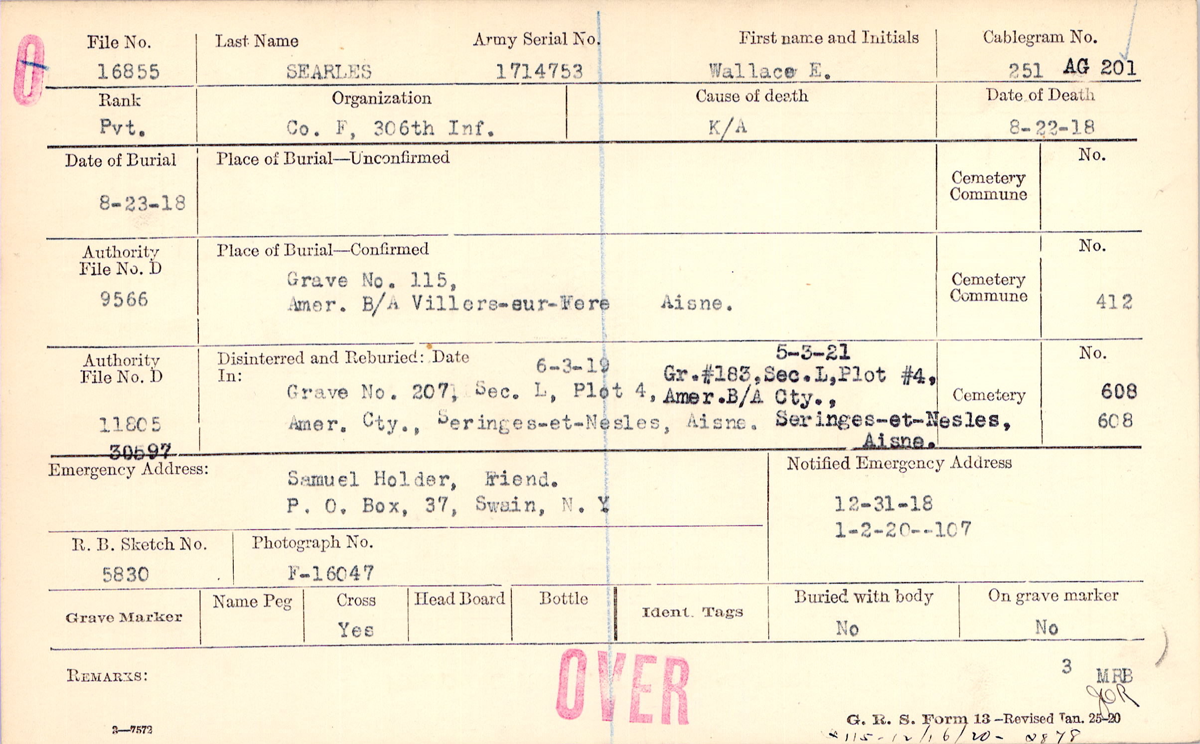 Grave 115, Amer. B/A, Villers-sur-Fere, Aisne