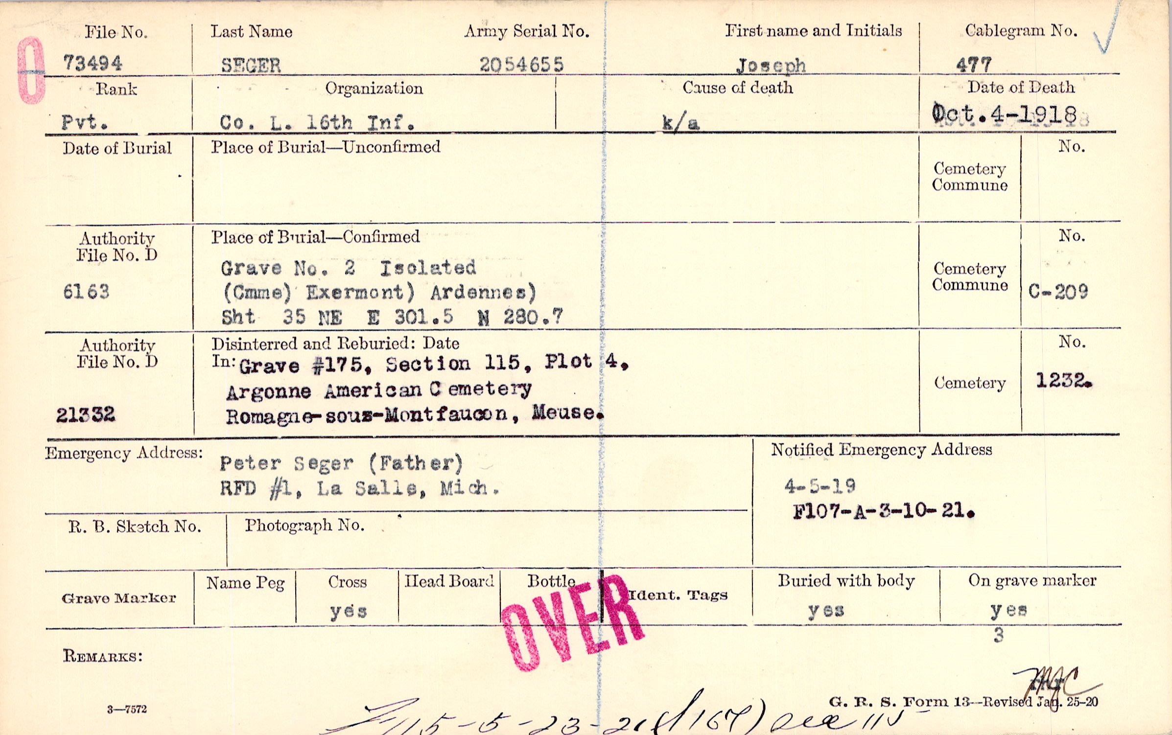 Grave 2 , Isolated, Cmme Exermont Ardennes, Sht 35 NE