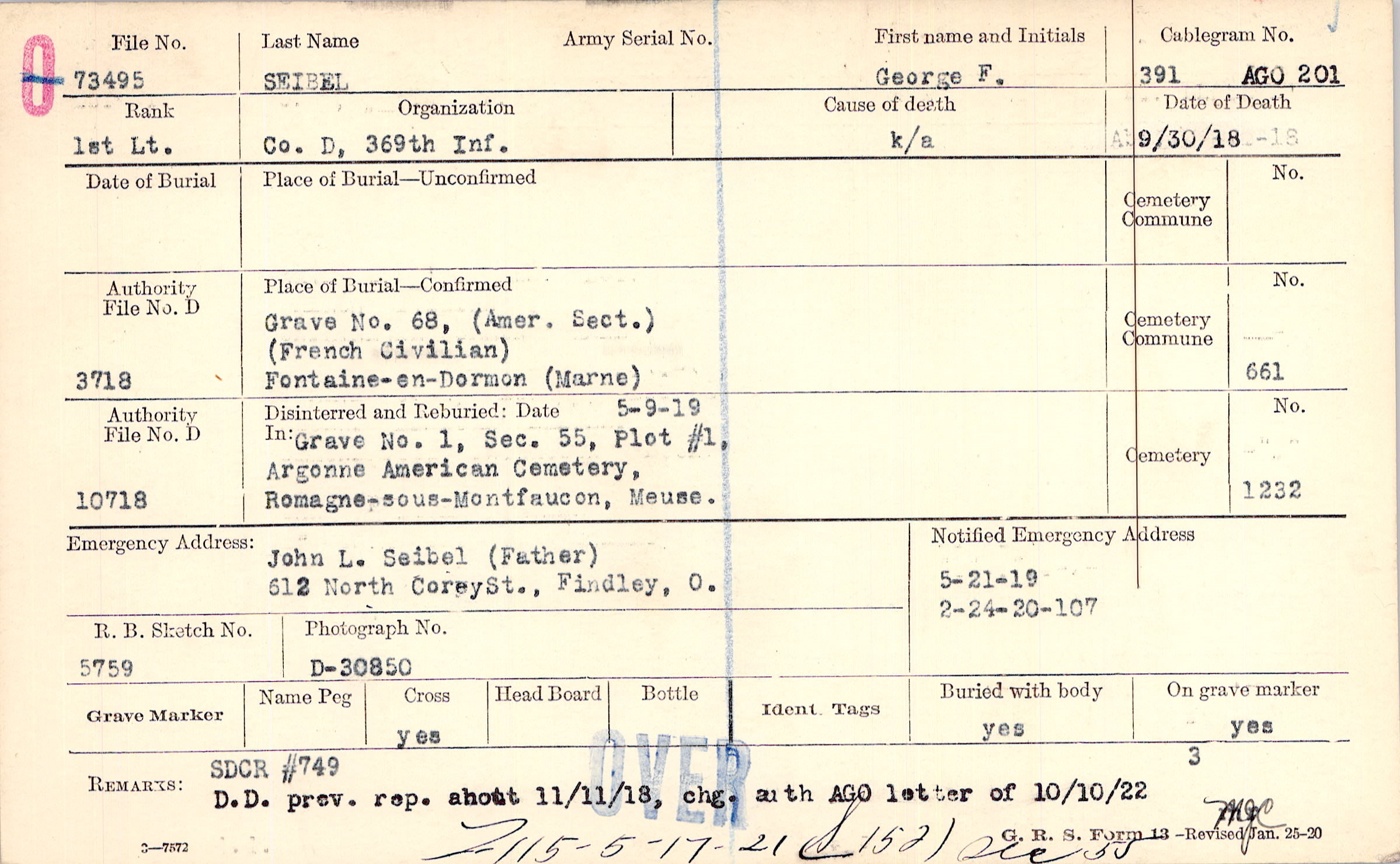 Grave 68, Amer. Sect., French Civilian, Fontaine-en-Dormon, Marne