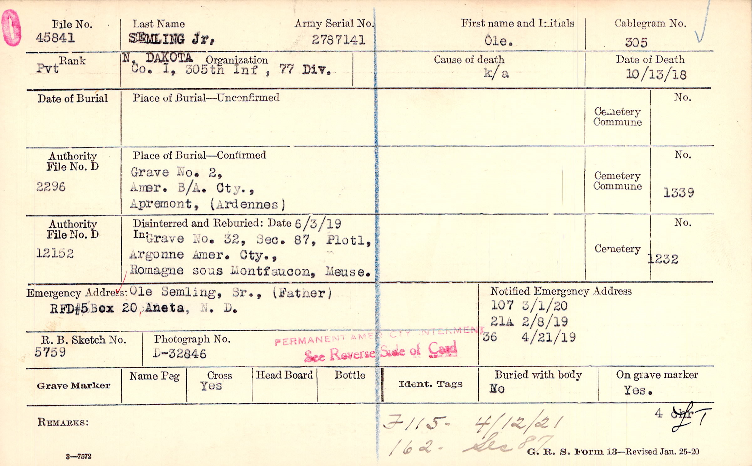 Grave 2, Amer. B/A Cty., Apremont, Ardennes