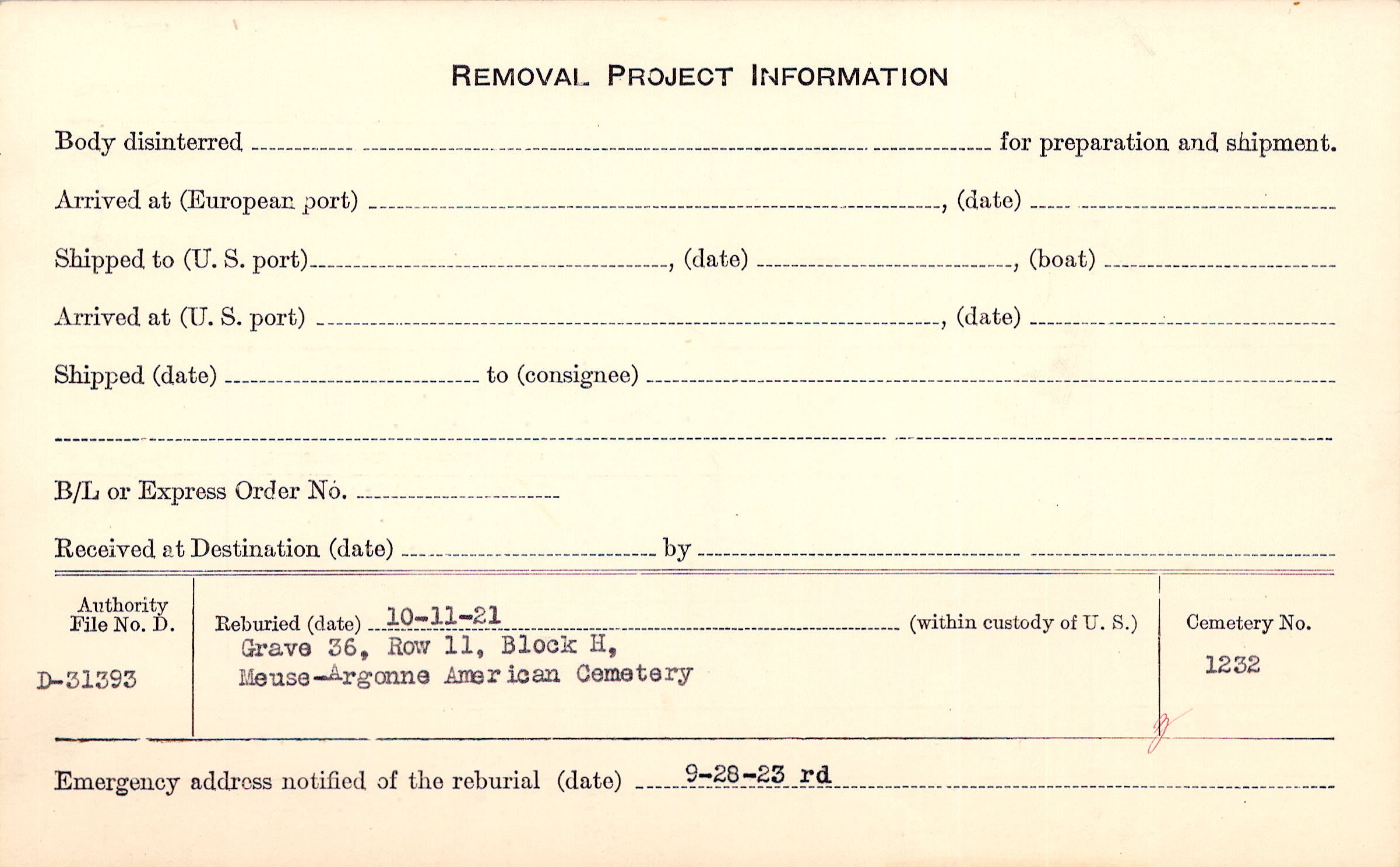 | Permanent Burial in Foreign Cemetery |
