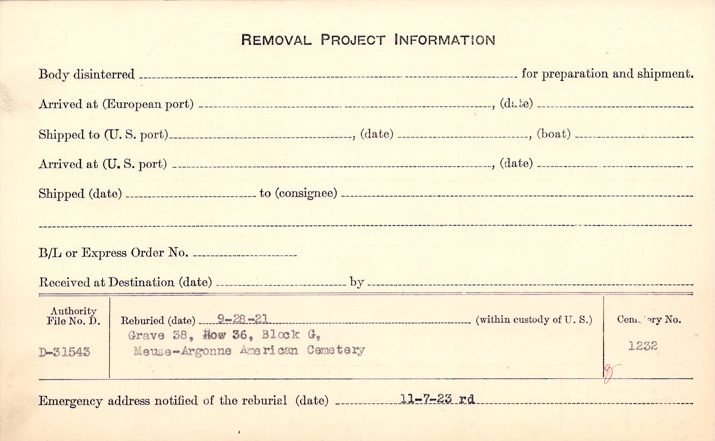 | Reburied (date): |
