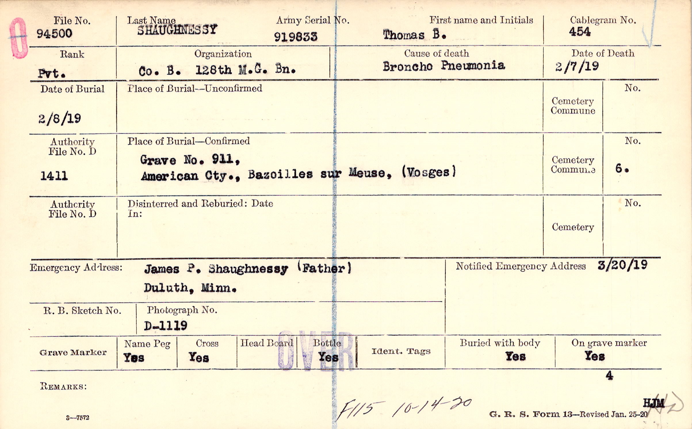 Grave 911, American Cty., Bazoilles sur Meuse, Vosges