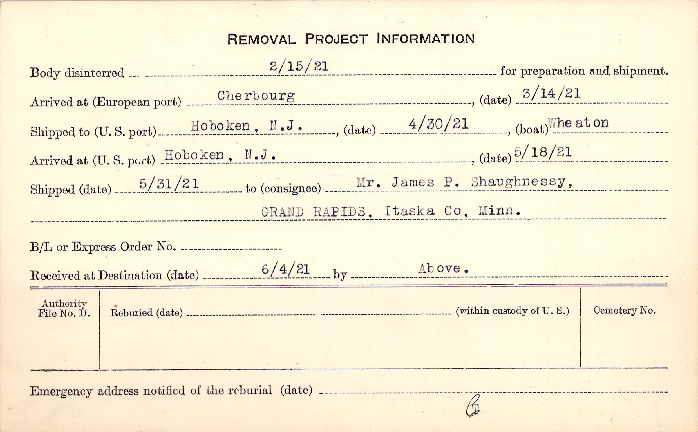 to Mr. James P. Shaughnessy, GRAND RAPIDS, Itaska Co, Minn.
