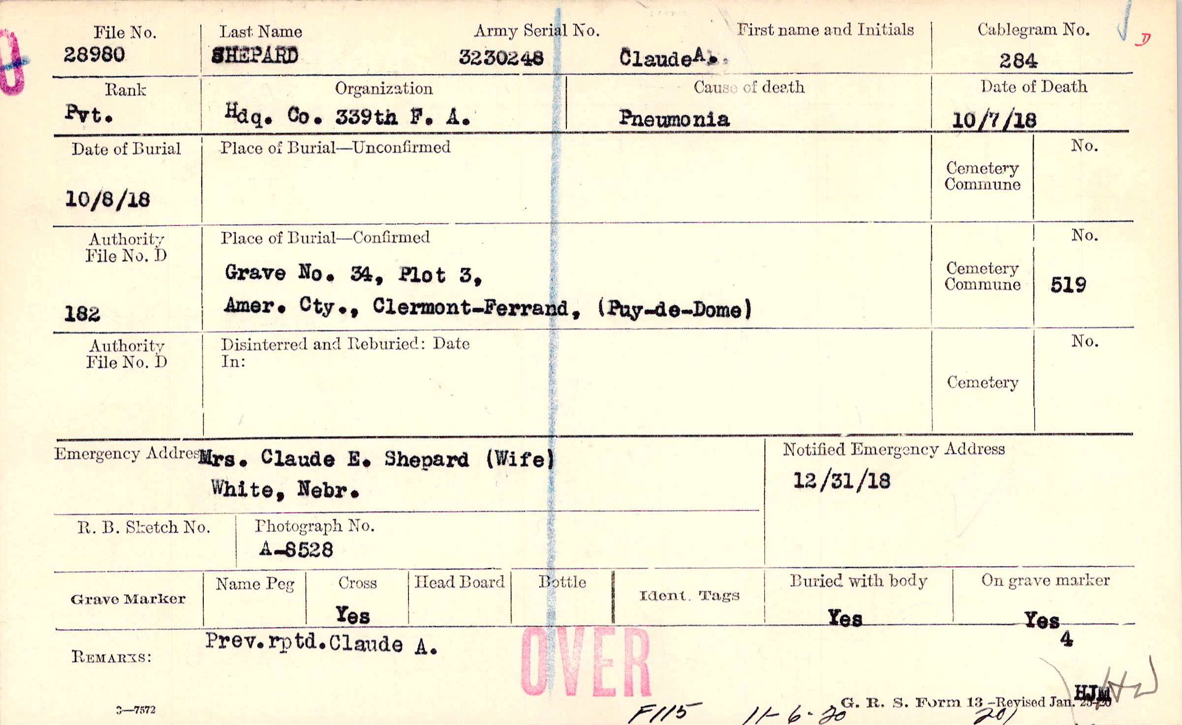 Mrs. Claude E. Shepard (Wife), White, Nebr.