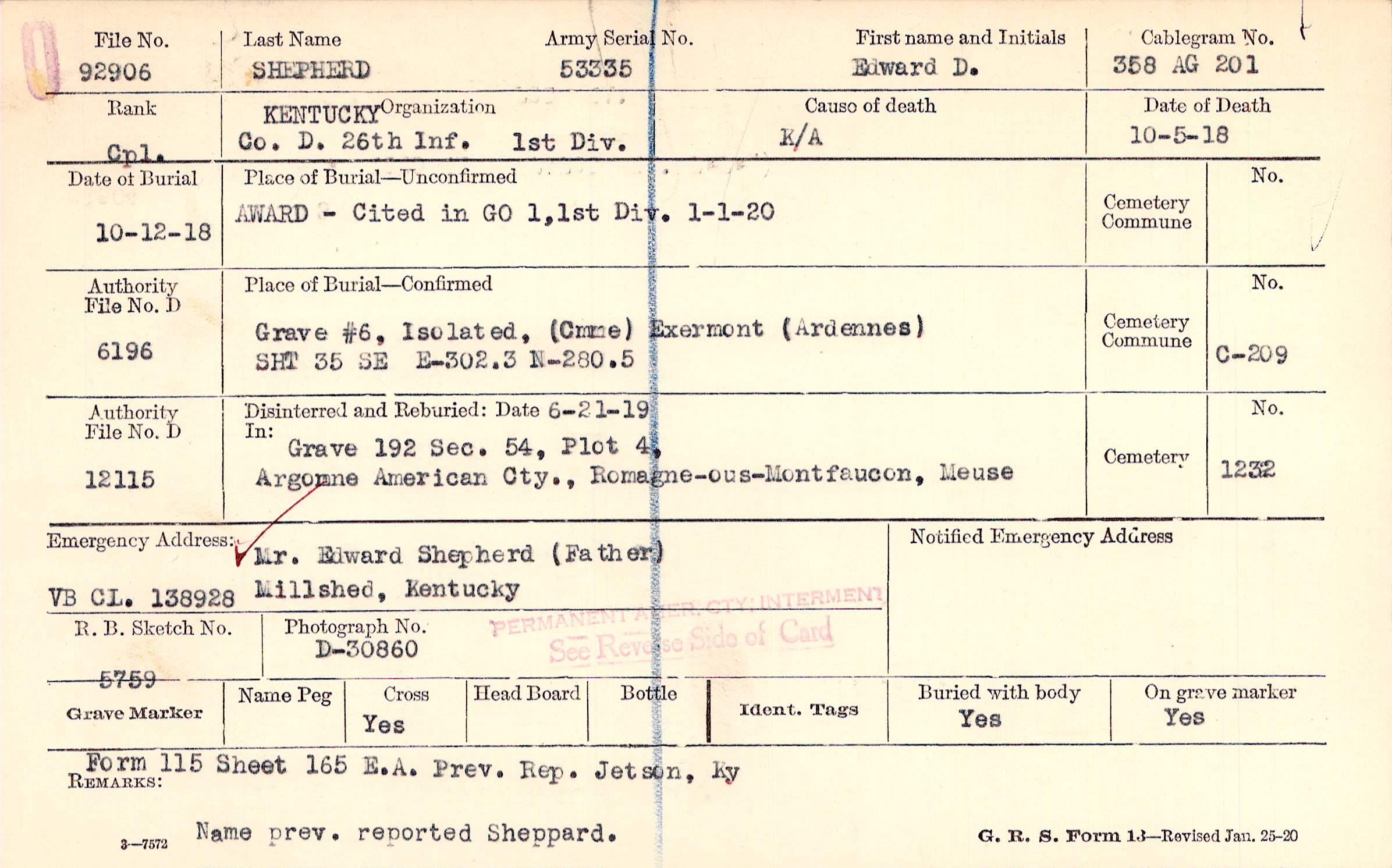Mr. Edward Shepherd (Father), Millshed, Kentucky, VB CL. 138928