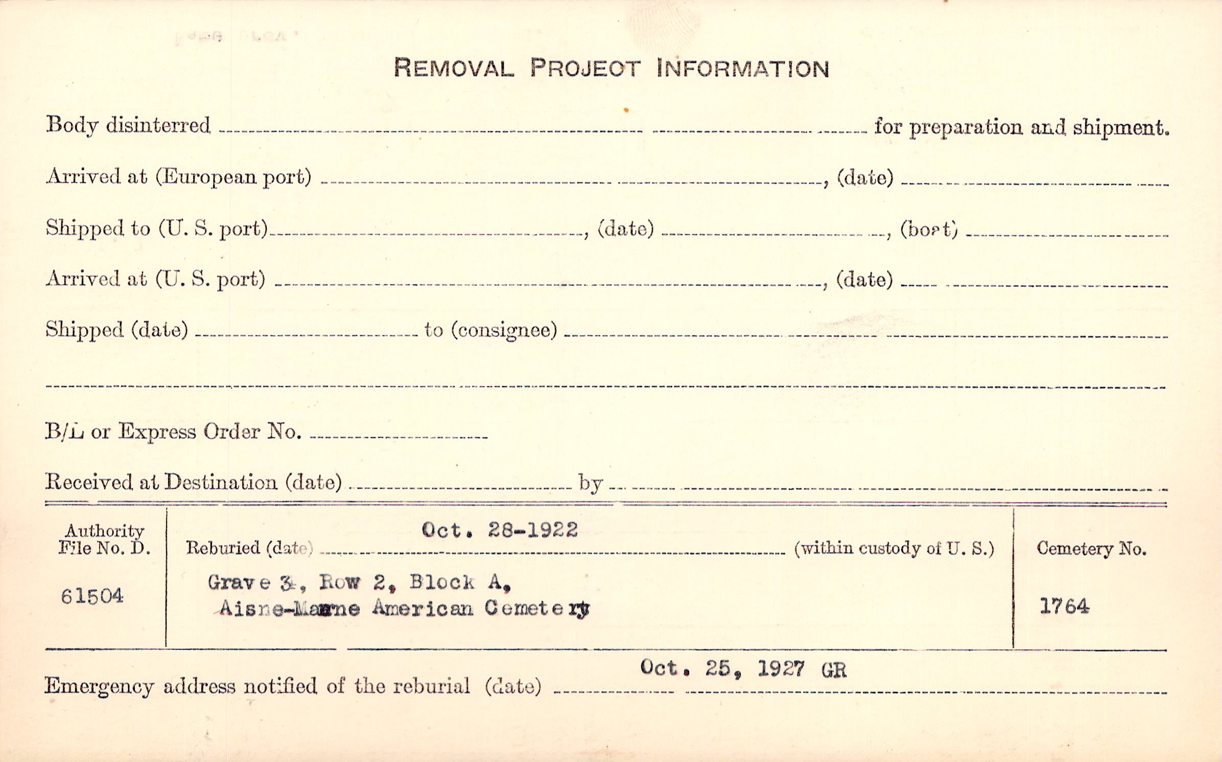 Grave 192, Section 54, Plot 4, Argonne American Cemetery, Romagne-sous-Montfaucon, Meuse