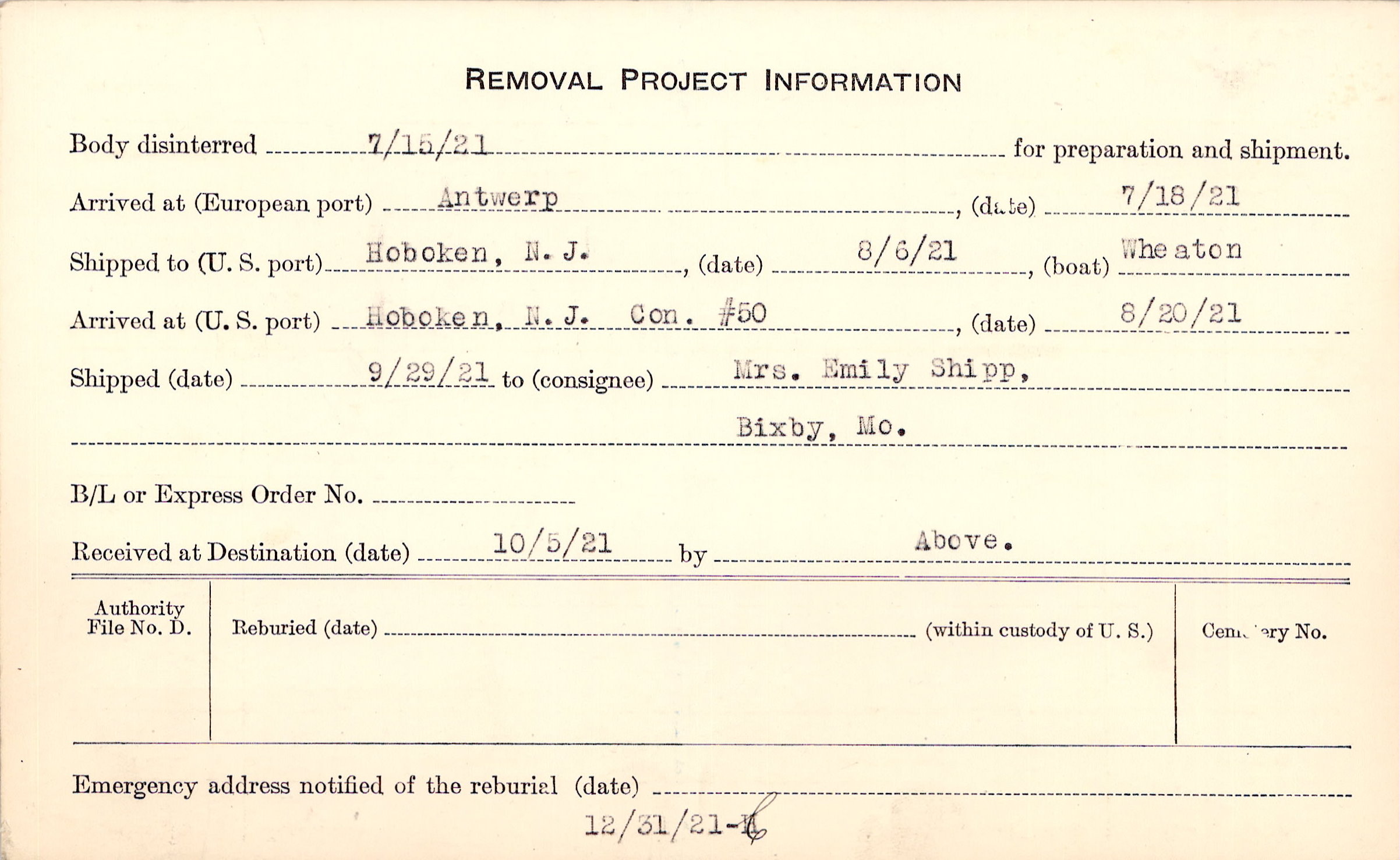 Mrs. Emily Shipp (Mother), Bixby, Mo.