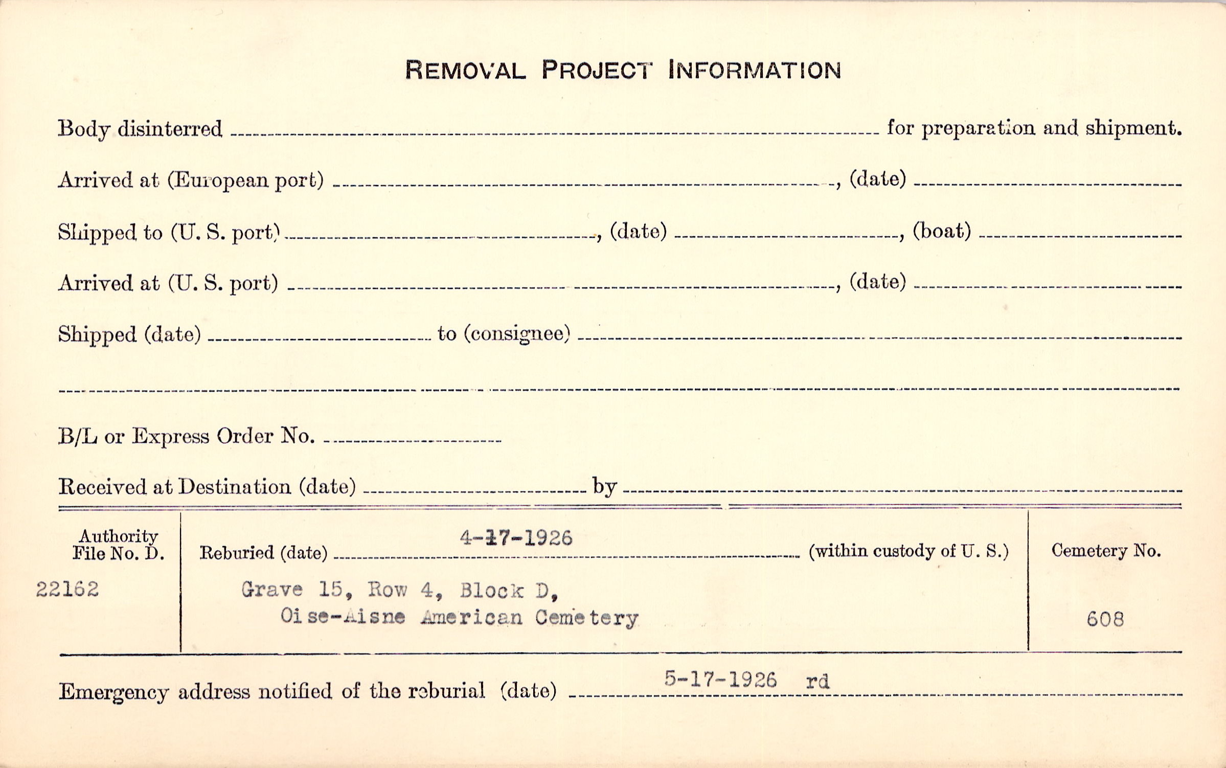 American B/A Cemetery, Seringes-et-Nesles, Aisne, IN MORGUE