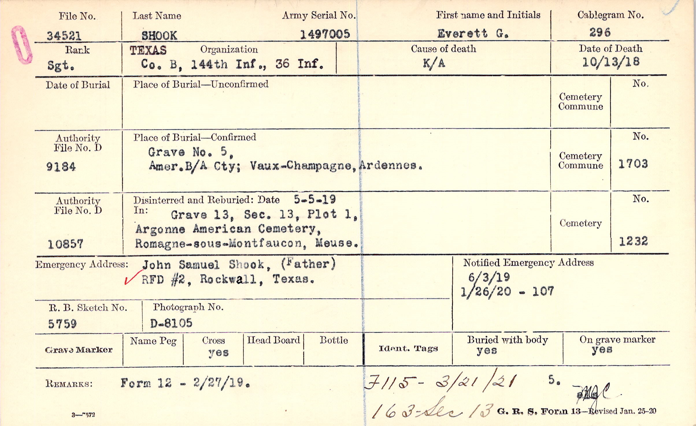 John Samuel Shook, (Father), RFD #2, Rockwall, Texas.