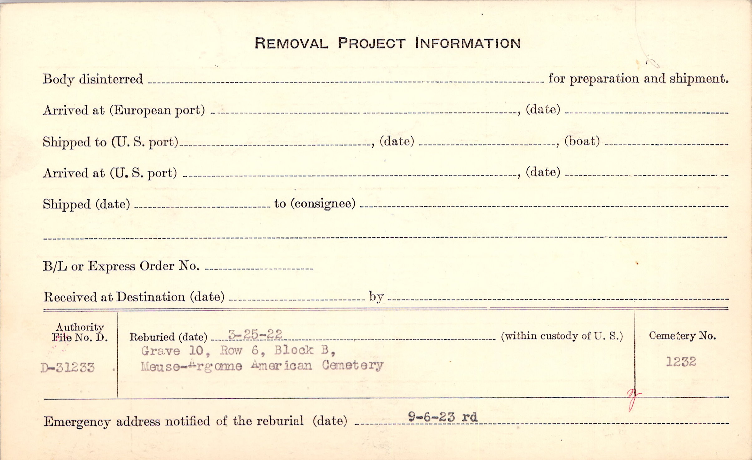 Grave 137, Section 52, Plot 3, Argonne American Cemetery, Romagne-sous-Montfaucon, Meuse
