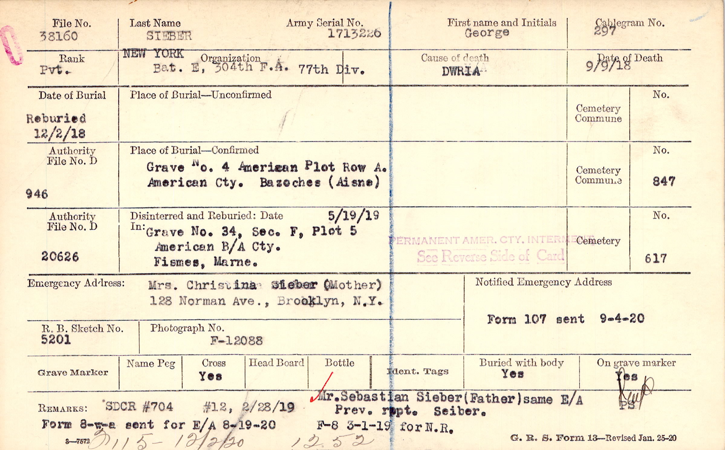 Mrs. Christina Sieber (Mother), 128 Norman Ave., Brooklyn, N.Y.