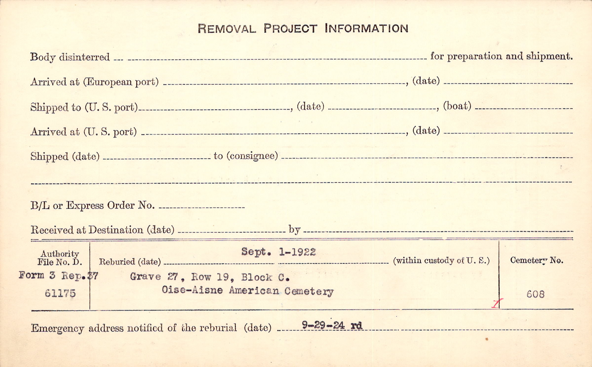 Grave 4, American Plot, Row A., American Cty., Bazoches, Aisne