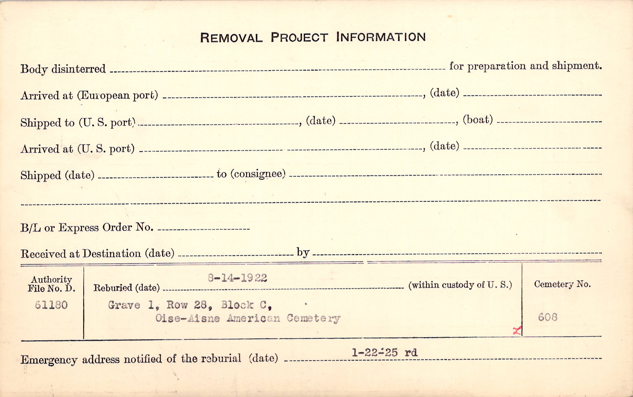 Grave 174, Amer. Plot, Row G, Amer. Cty., Bazoches, Aisne