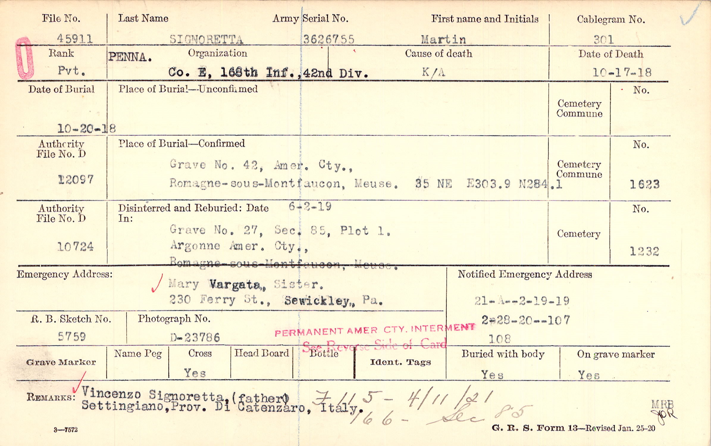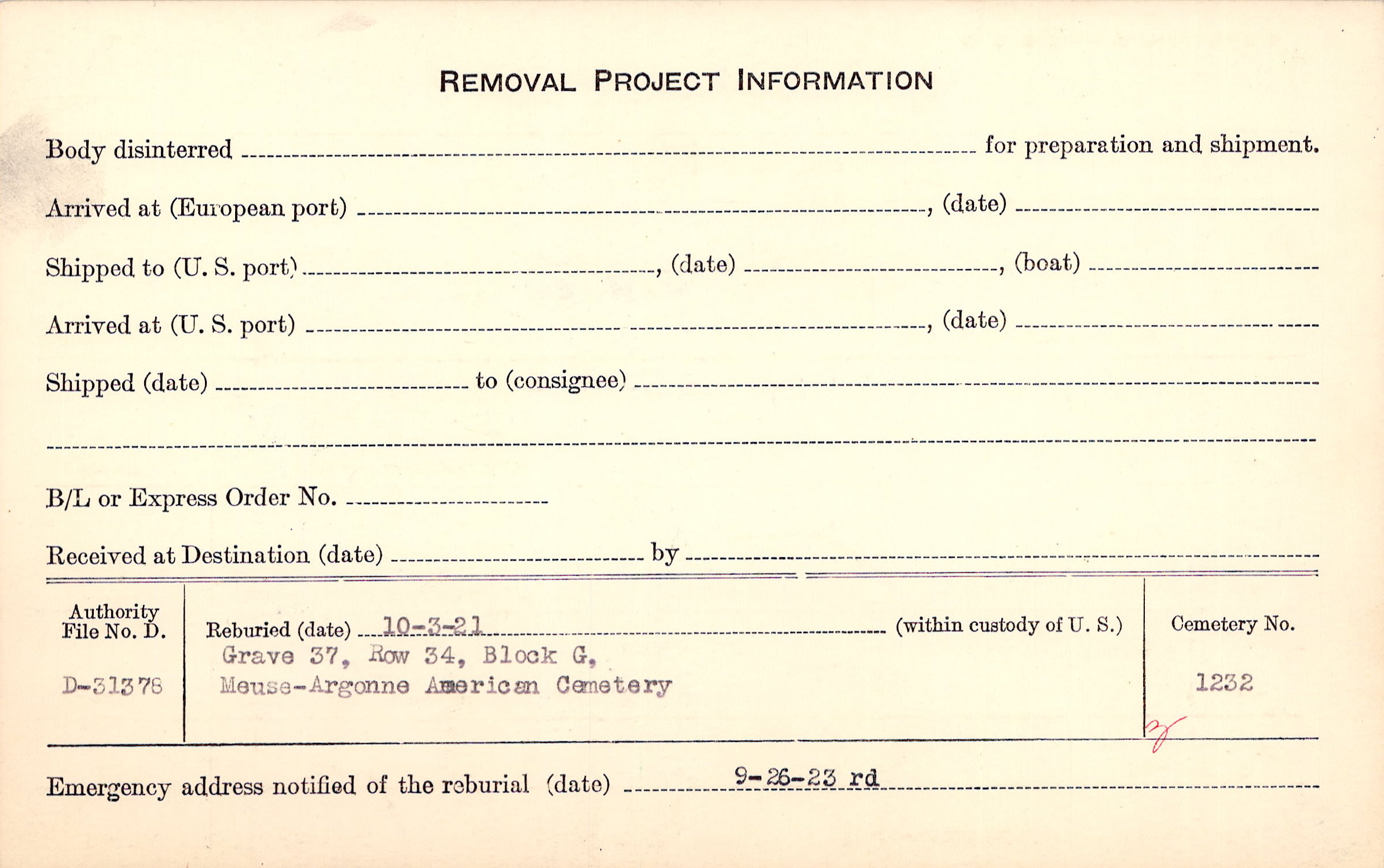 Grave 42, Amer. Cty., Romagne-sous-Montfaucon, Meuse.