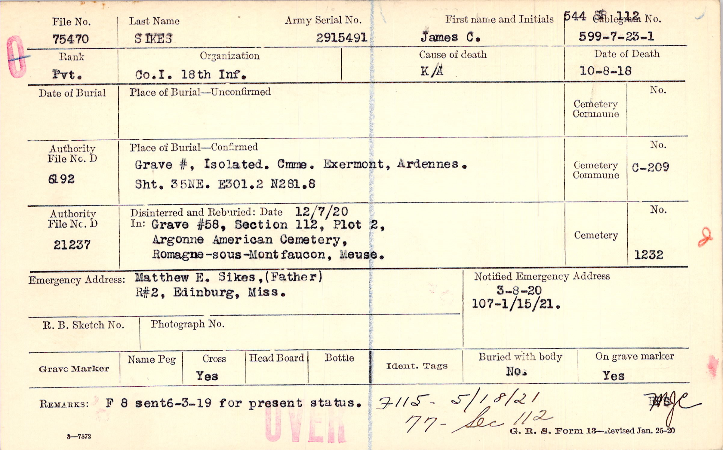 Grave #, Isolated, Cmme. Exermont, Ardennes, Sht. 35NE