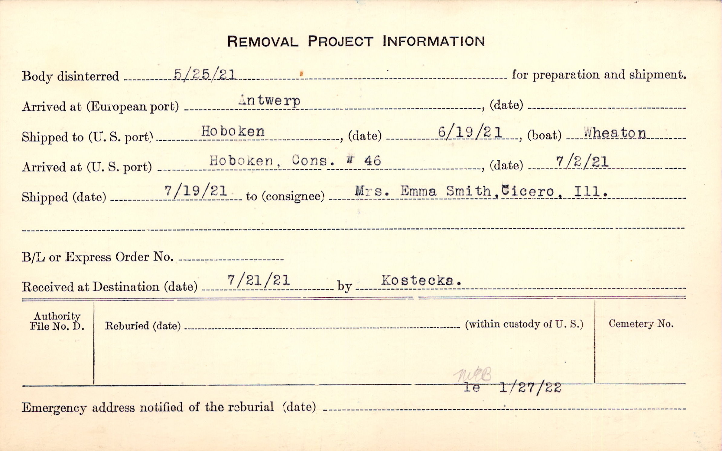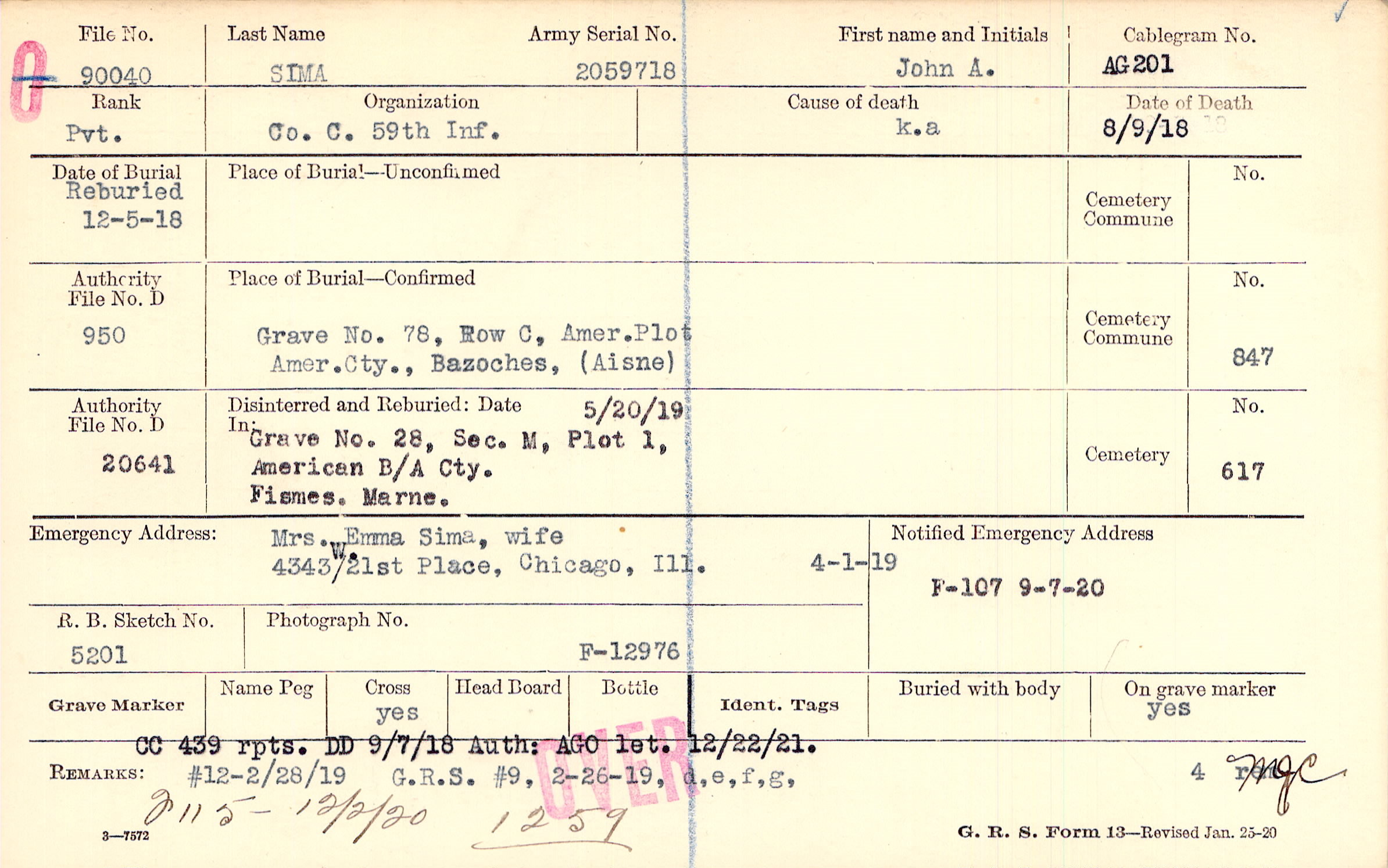 Mrs. Emma Sima, wife, 4343 W. 21st Place, Chicago, Ill.