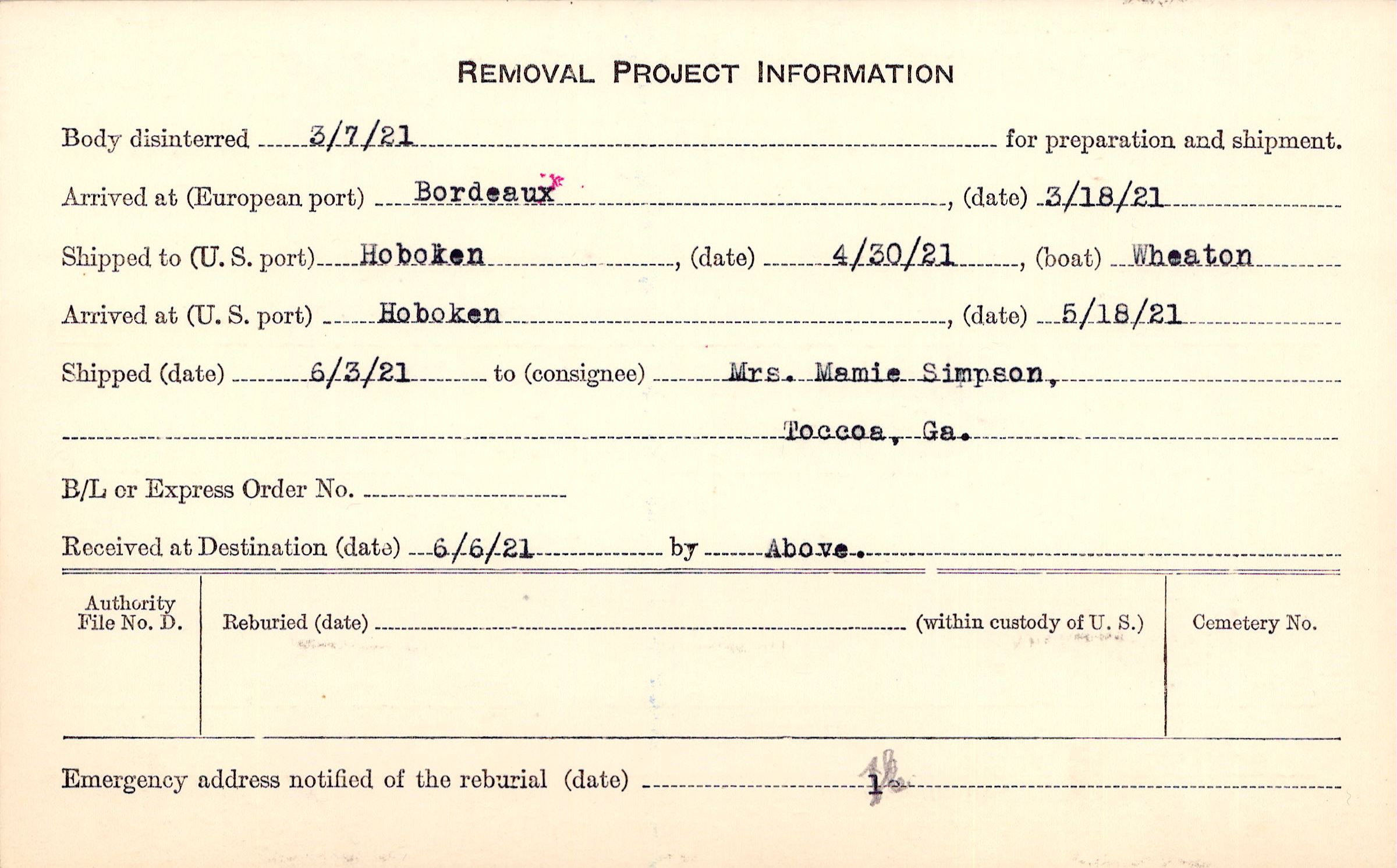 to Mrs. Mamie Simpson, Toccoa, Ga.