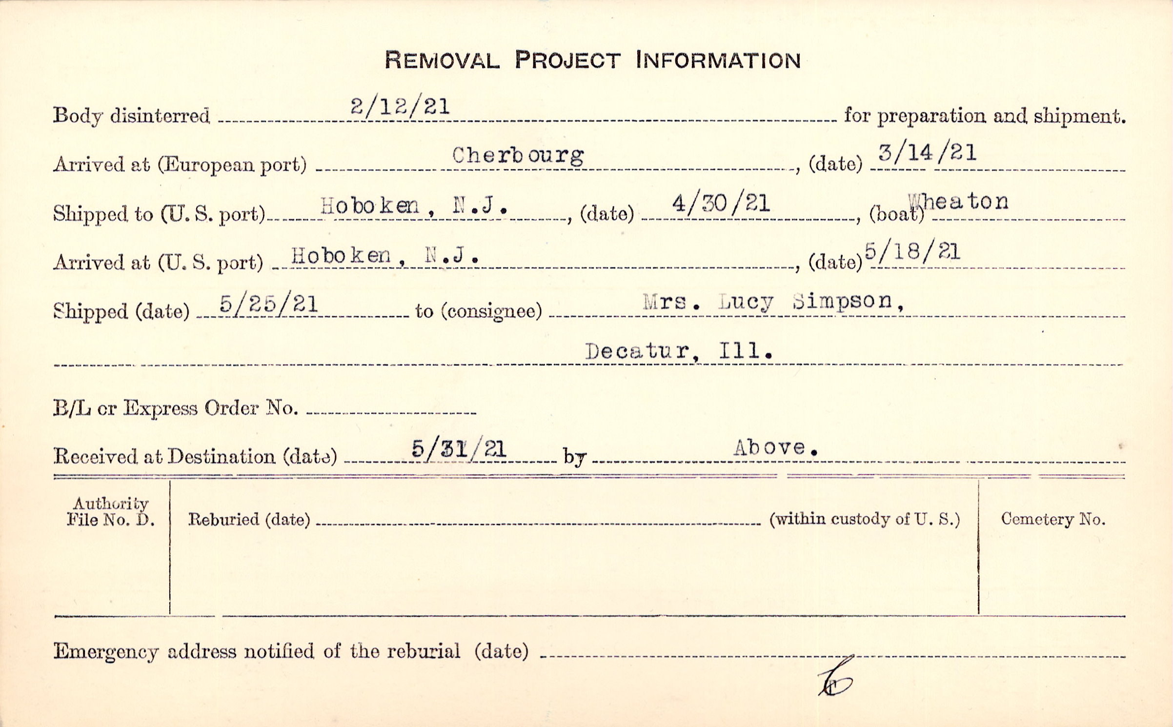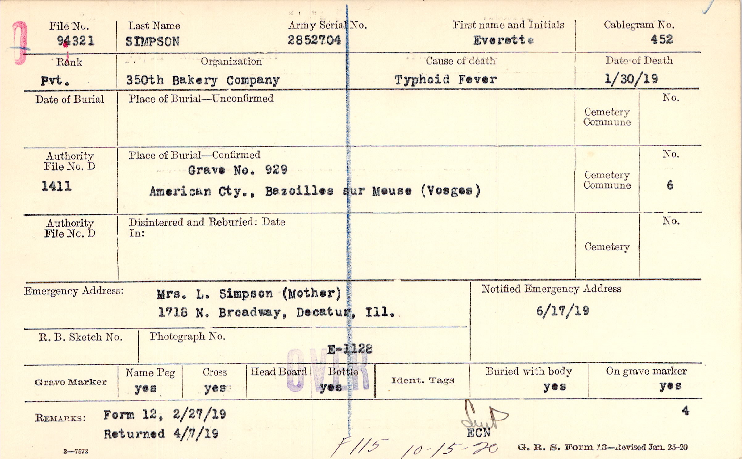 Mrs. L. Simpson (Mother), 1718 N. Broadway, Decatur, Ill.