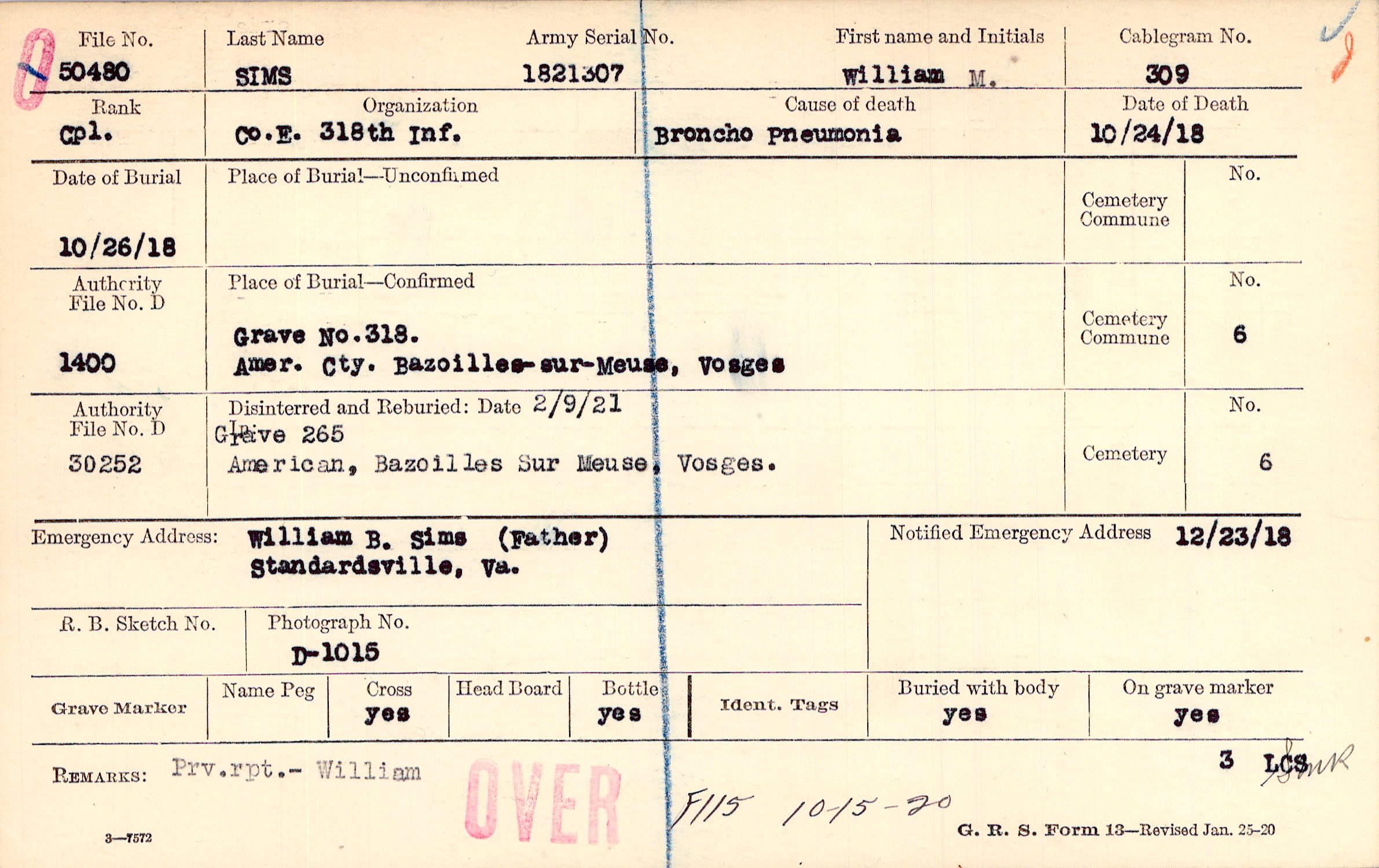 Grave 318, Amer. Cty., Bazoilles-sur-Meuse, Vosges