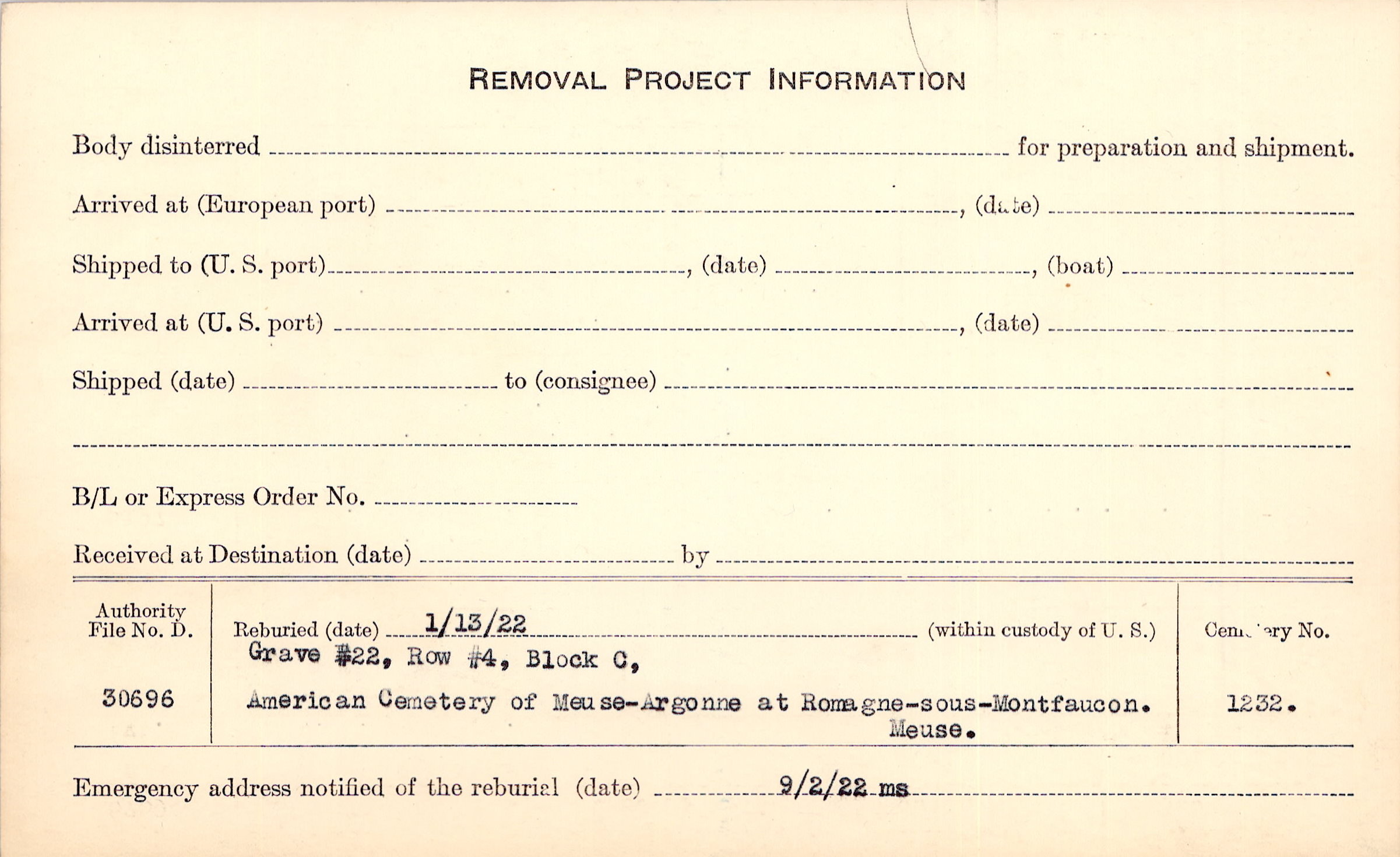 | Permanent Burial in Foreign Cemetery |