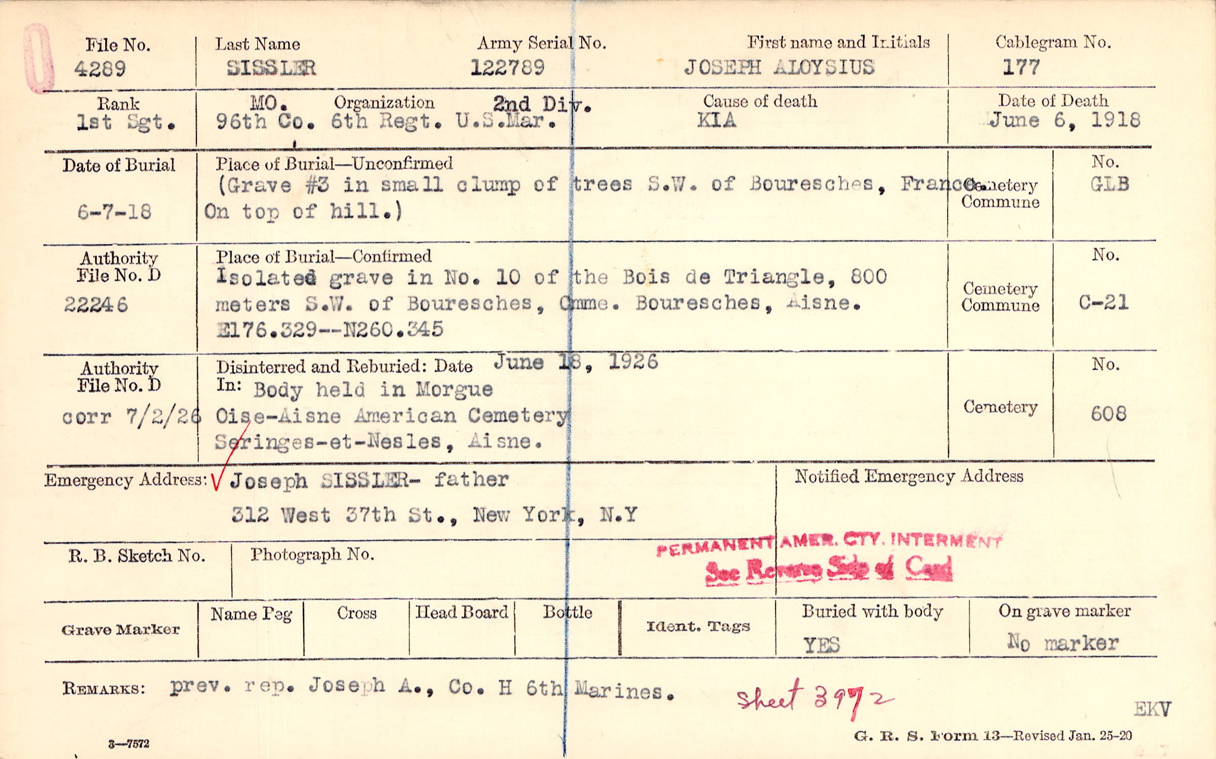 prev. rep. Joseph A., Co. H 6th Marines. Sheet 3972