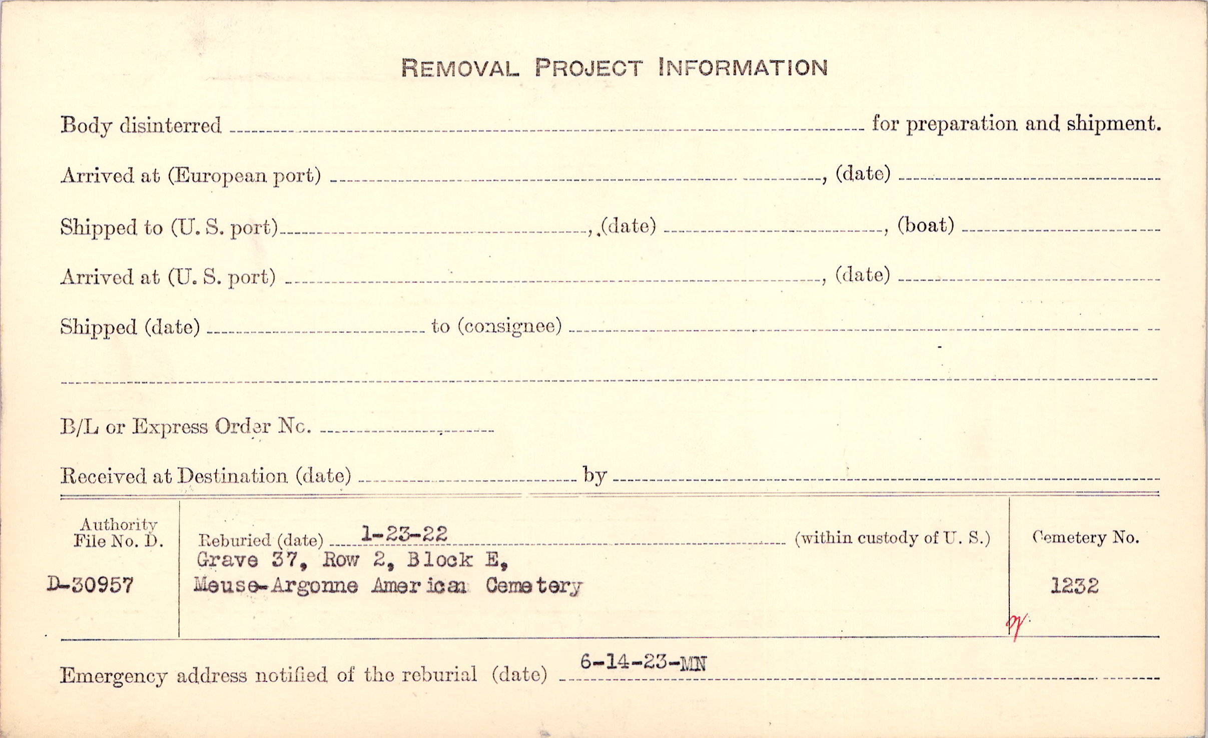 Grave 151, Section 14, Plot 3, Argonne American Cemetery, Romagne-sous-Montfaucon, Meuse