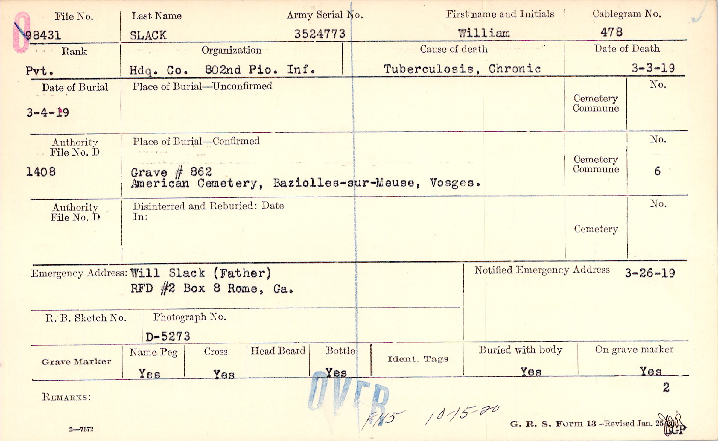 Grave # 862, American Cemetery, Baziolles-sur-Meuse, Vosges