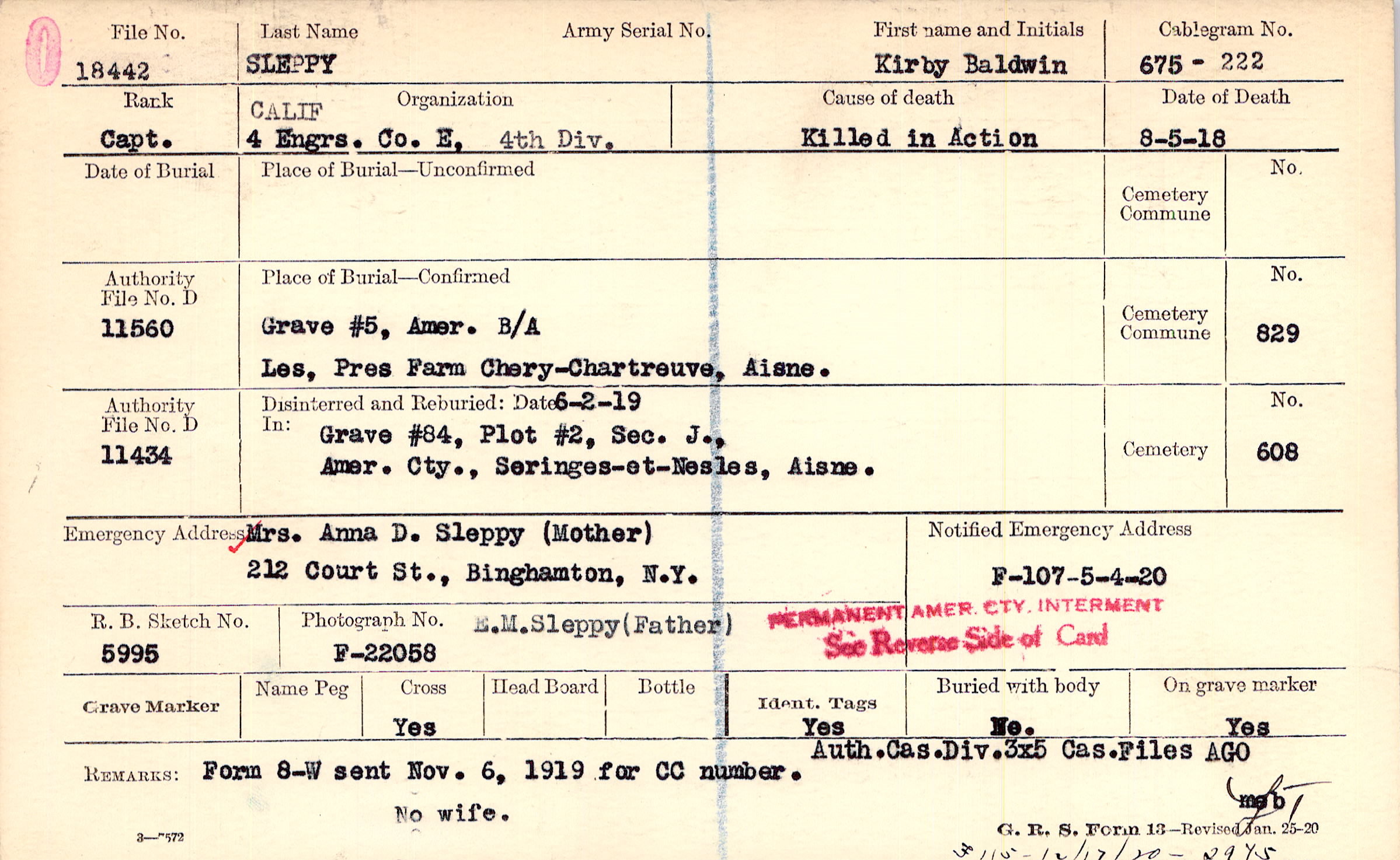 Mrs. Anna D. Sleppy (Mother), 212 Court St., Binghamton, N.Y., E.M.Sleppy (Father)