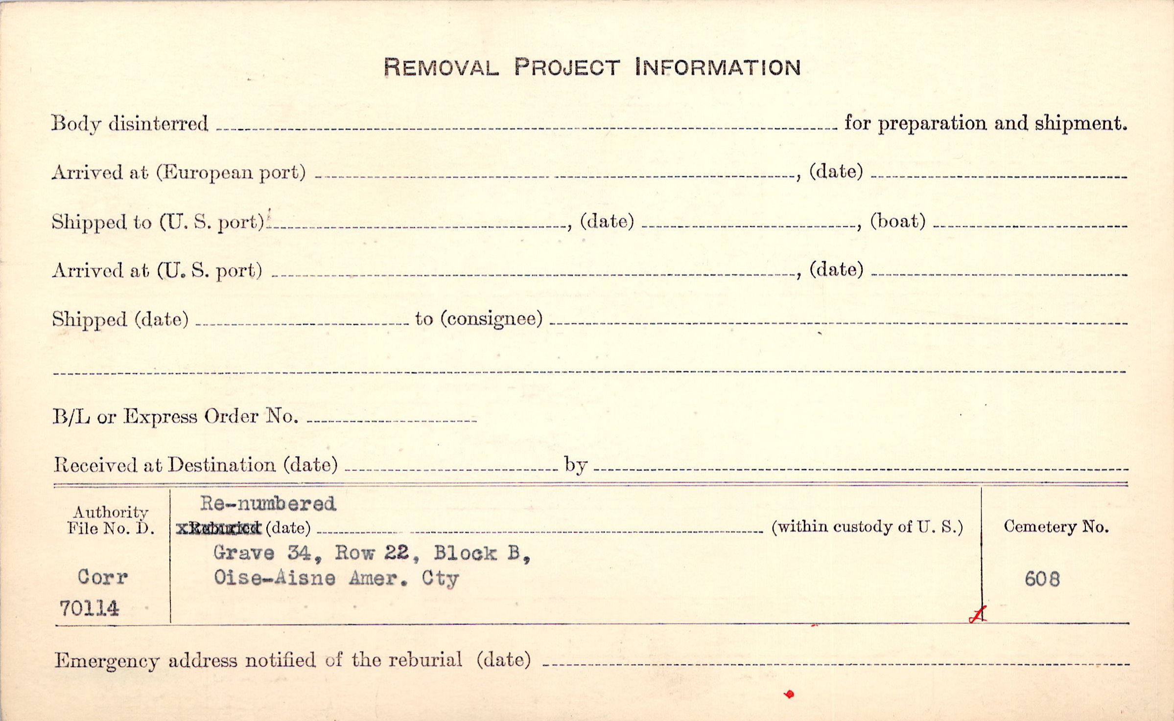 Grave #5, Amer. B/A, Les, Pres Farm, Chery-Chartreuve, Aisne.