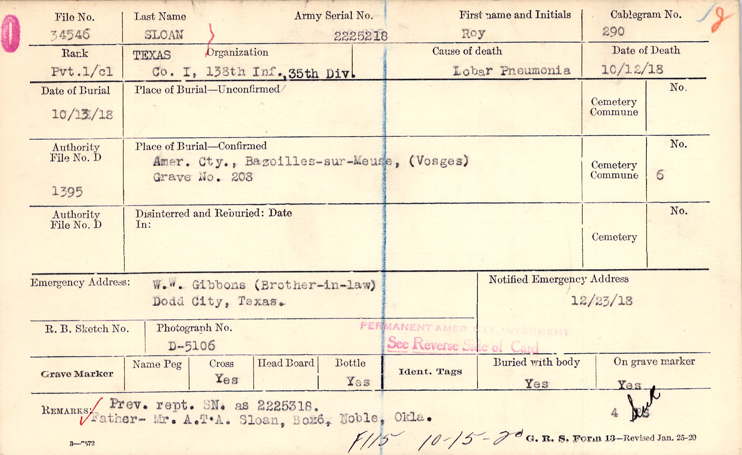 Grave 208, Amer. Cty., Bazoilles-sur-Meuse, Vosges