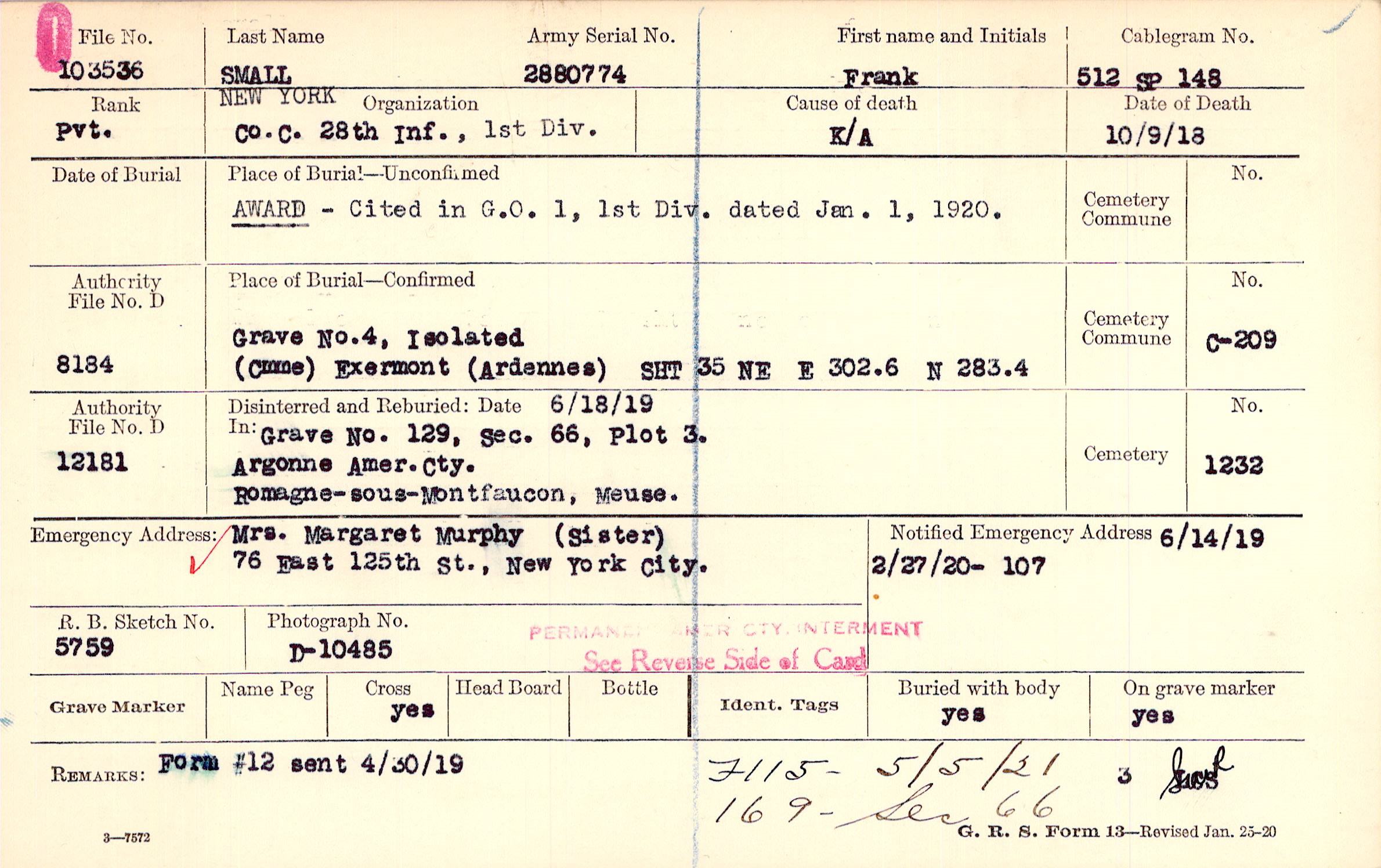 6/14/1919, Form 107: 2/27/1920