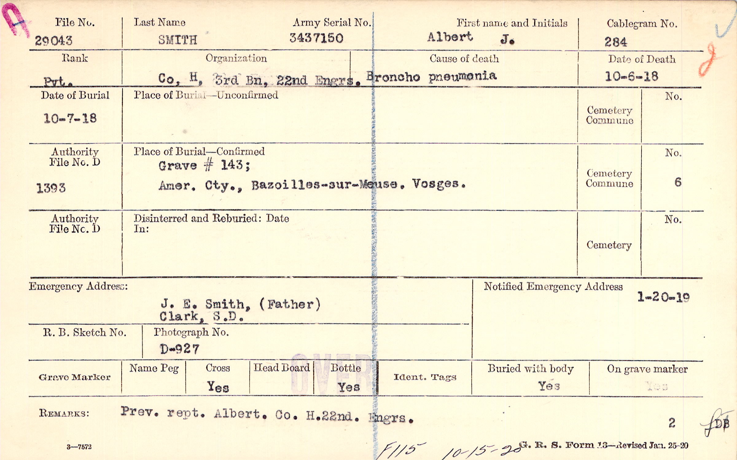 Grave #143, Amer. Cty., Bazoilles-sur-Meuse., Vosges.