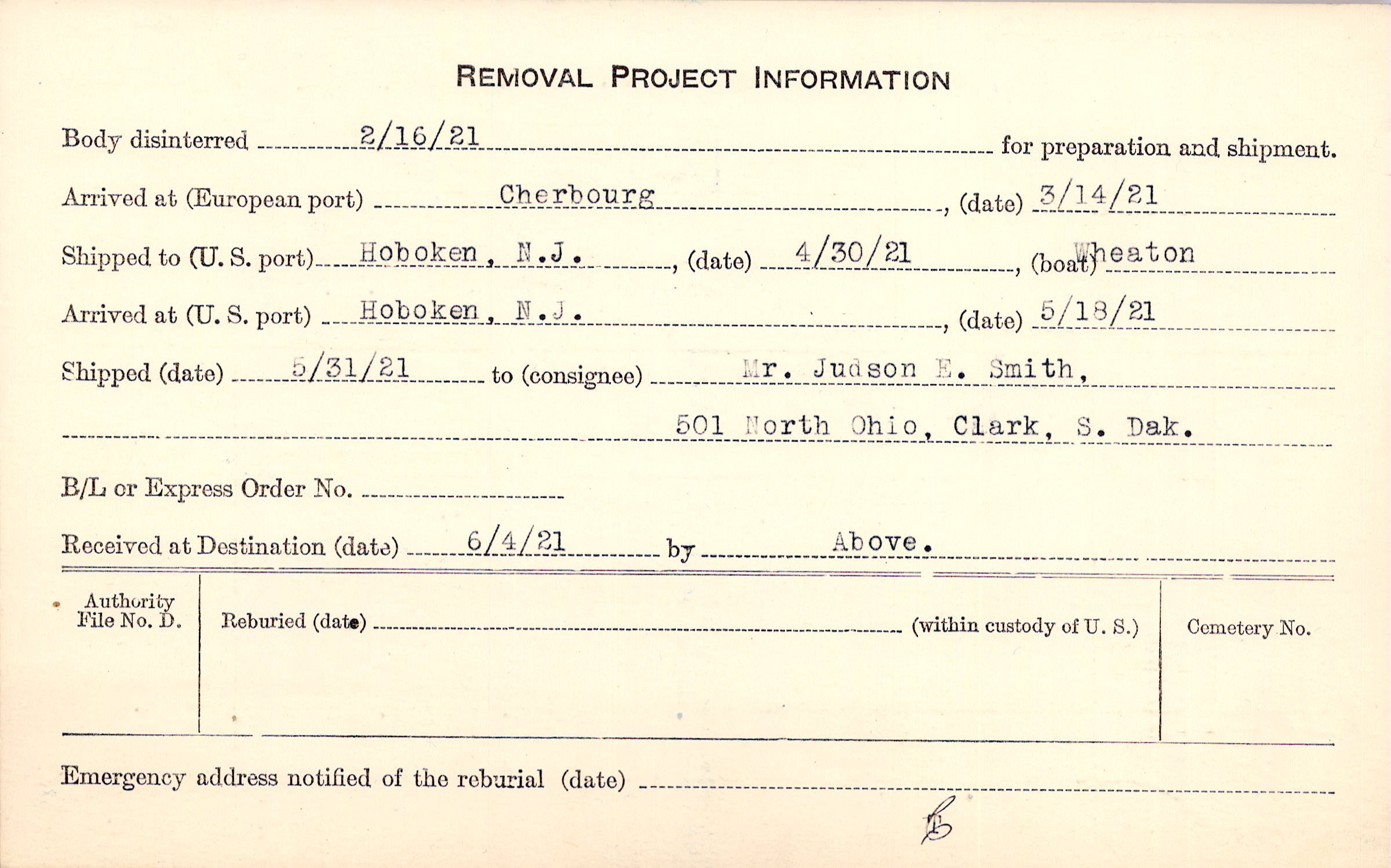 to Mr. Judson E. Smith, 501 North Ohio, Clark, S. Dak.